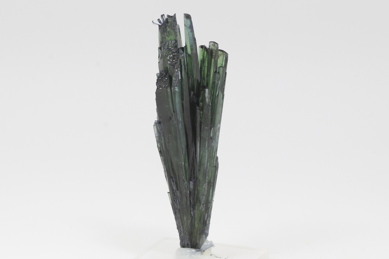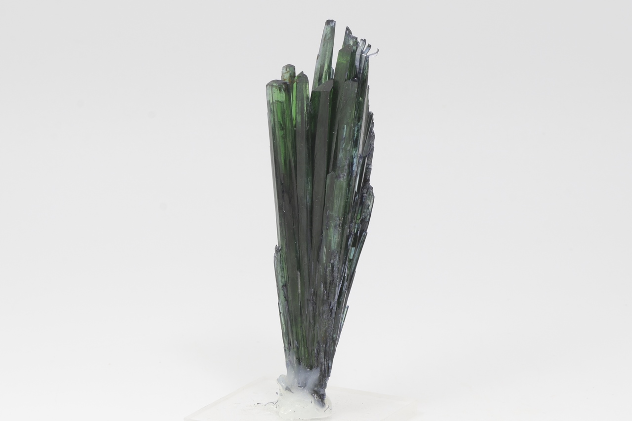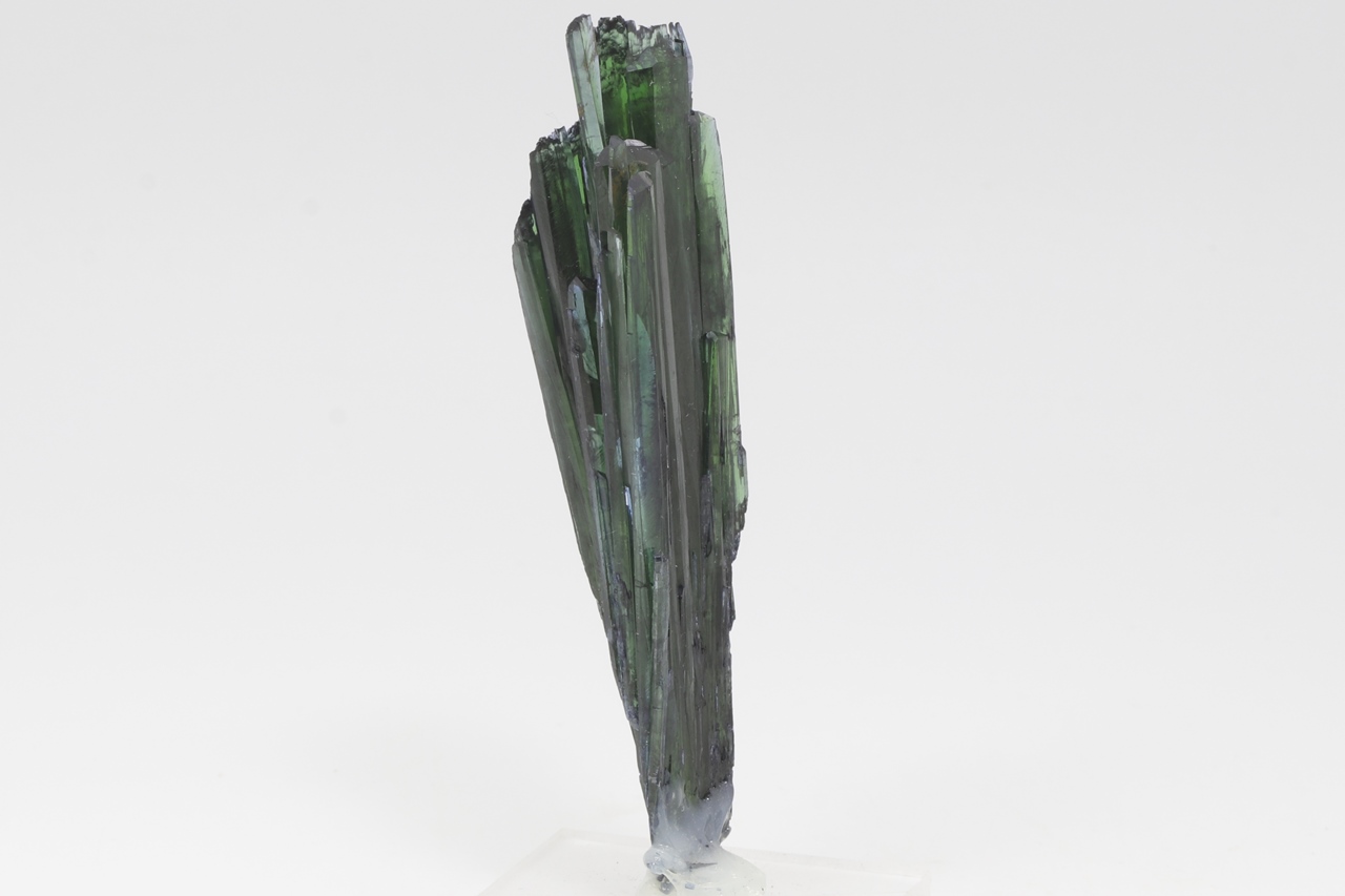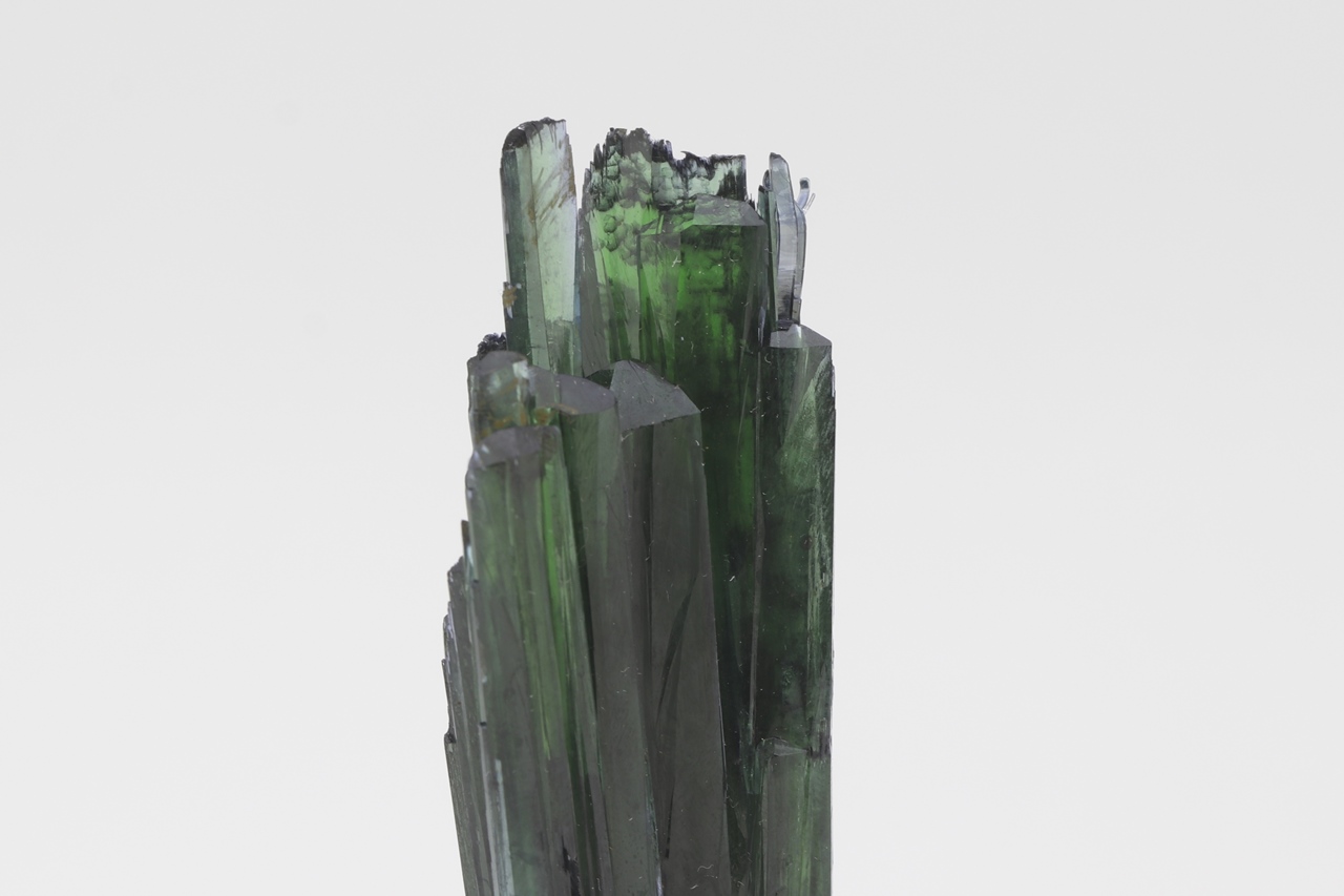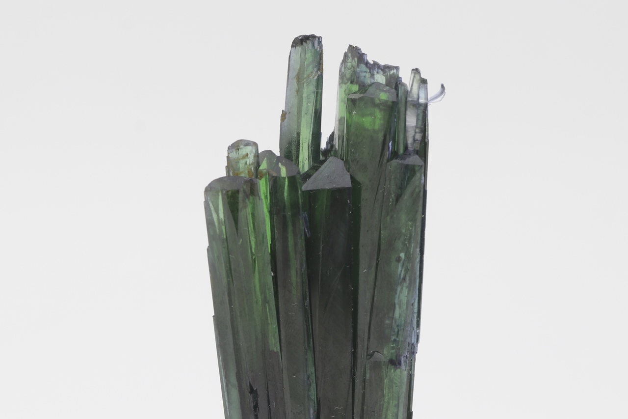 Sehr hochwertige Probe durchsichtiger, intensiv grüner, säulenförmiger Kristalle von Vivianit mit sehr gutem Abschluss.