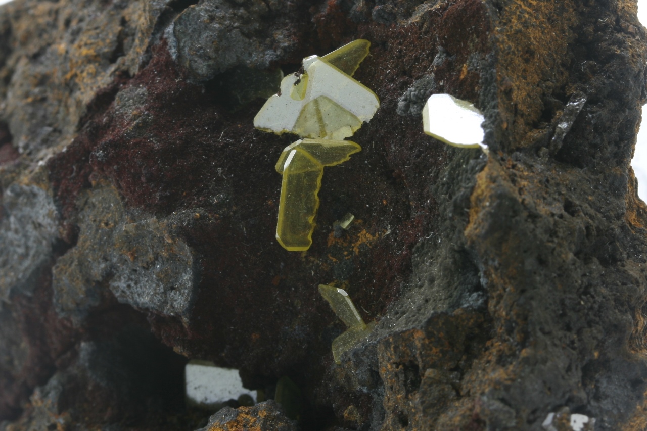 Dünne tafelige Kristalle von Blei-Molybdat – Wulfenit bis zu 7 mm groß.