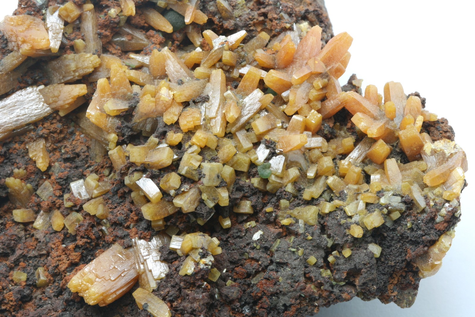 Druse von orangefarbenen Wulfenit-Kristallen mit einer Größe von bis zu 16 mm.