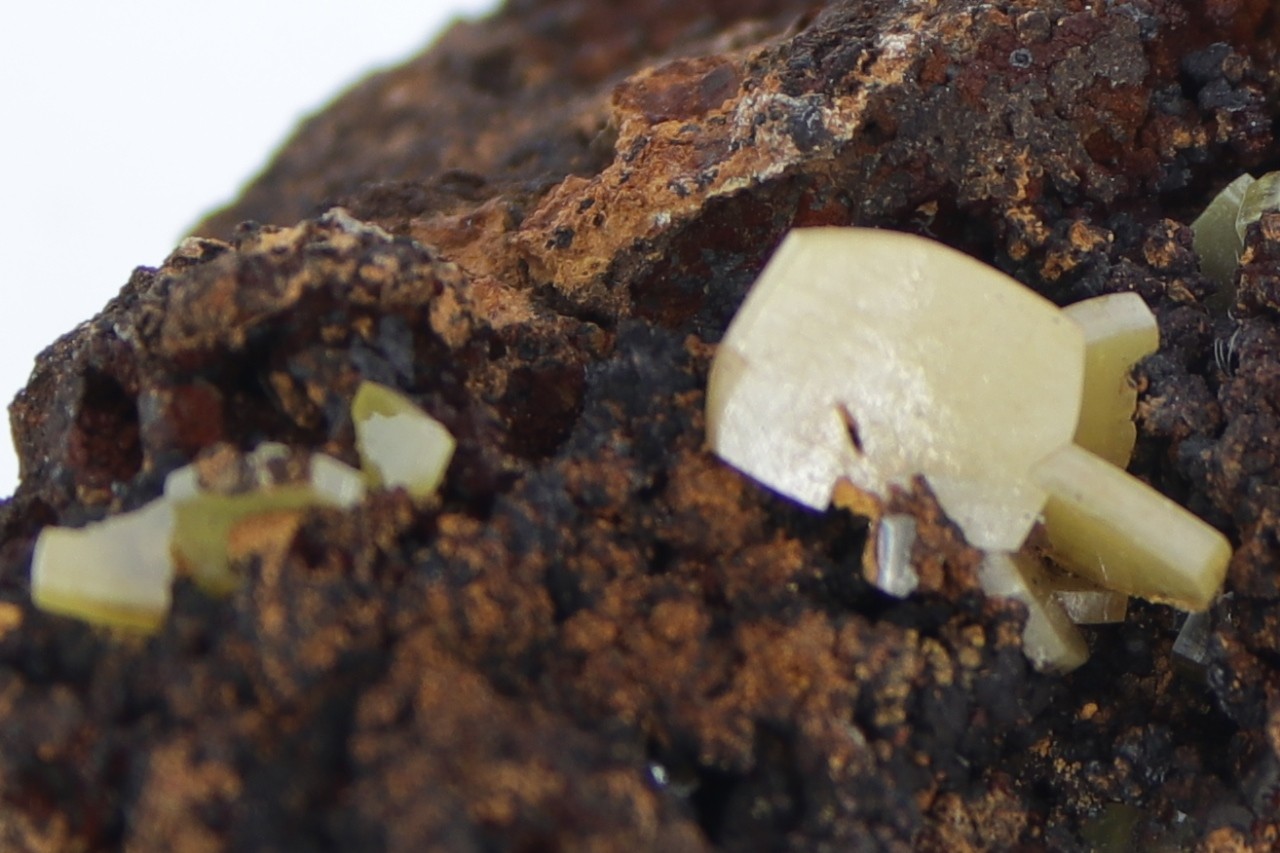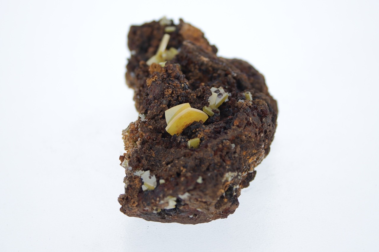 Gelbe tafelförmige Kristalle aus Bleimolybdat.