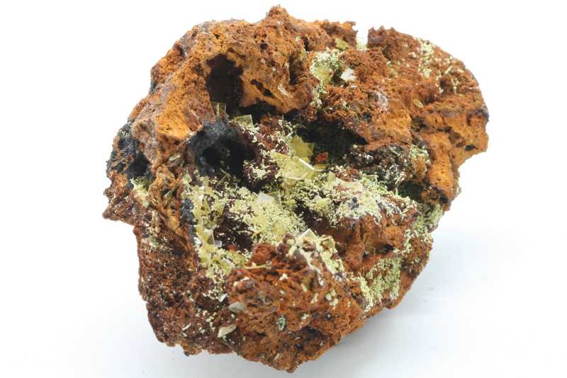 Schönes Sammlerstück von Wulfenit aus der mexikanischen Lokalität Mapimi. Reiche Druse unbeschädigter, glänzender, grünlichgelber Wulfenitkristalle mit einer Größe von bis zu 5 mm.