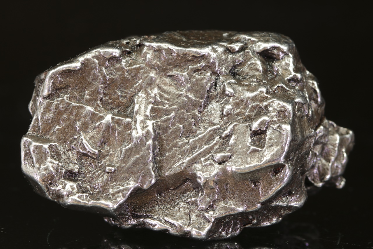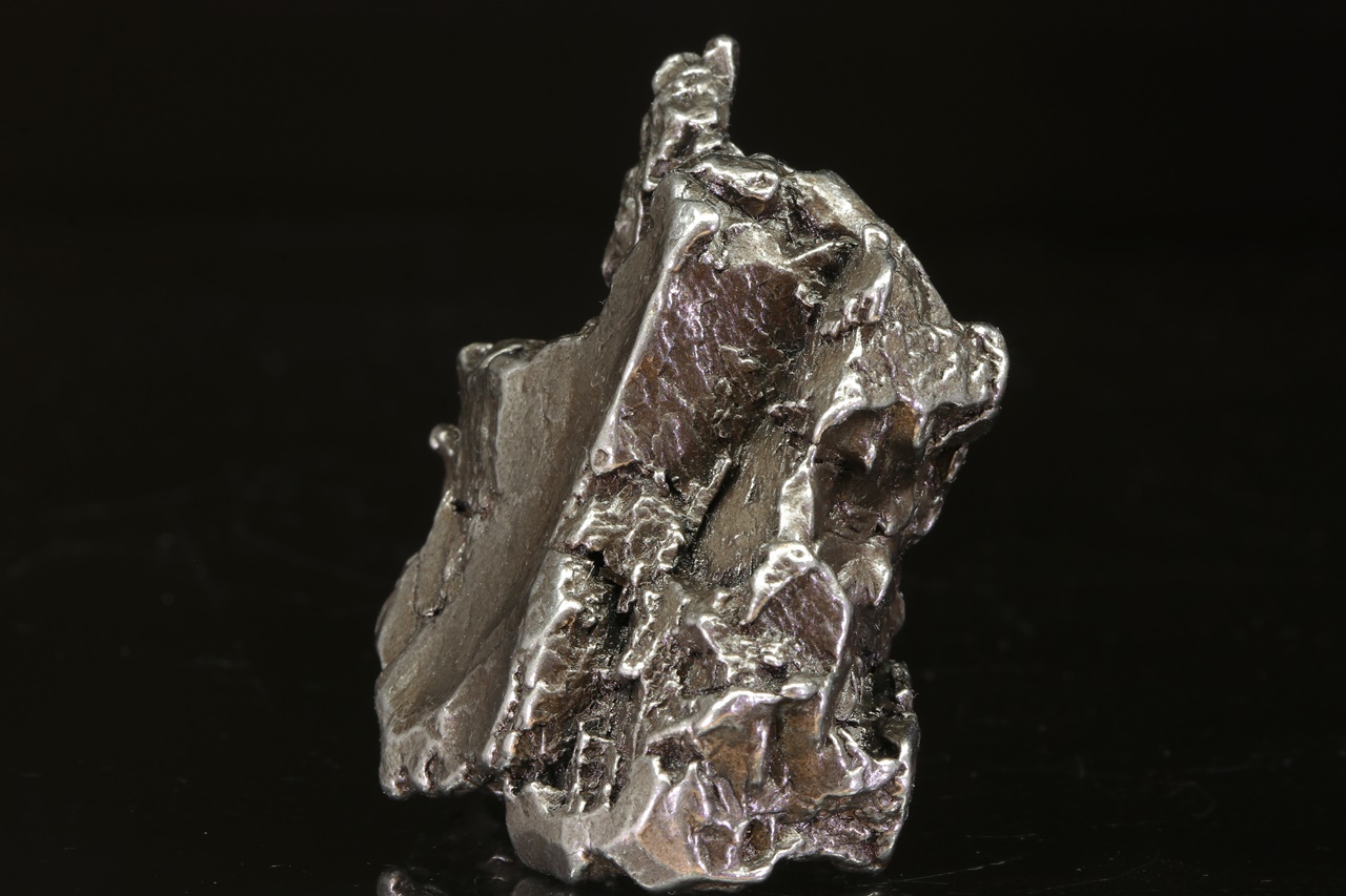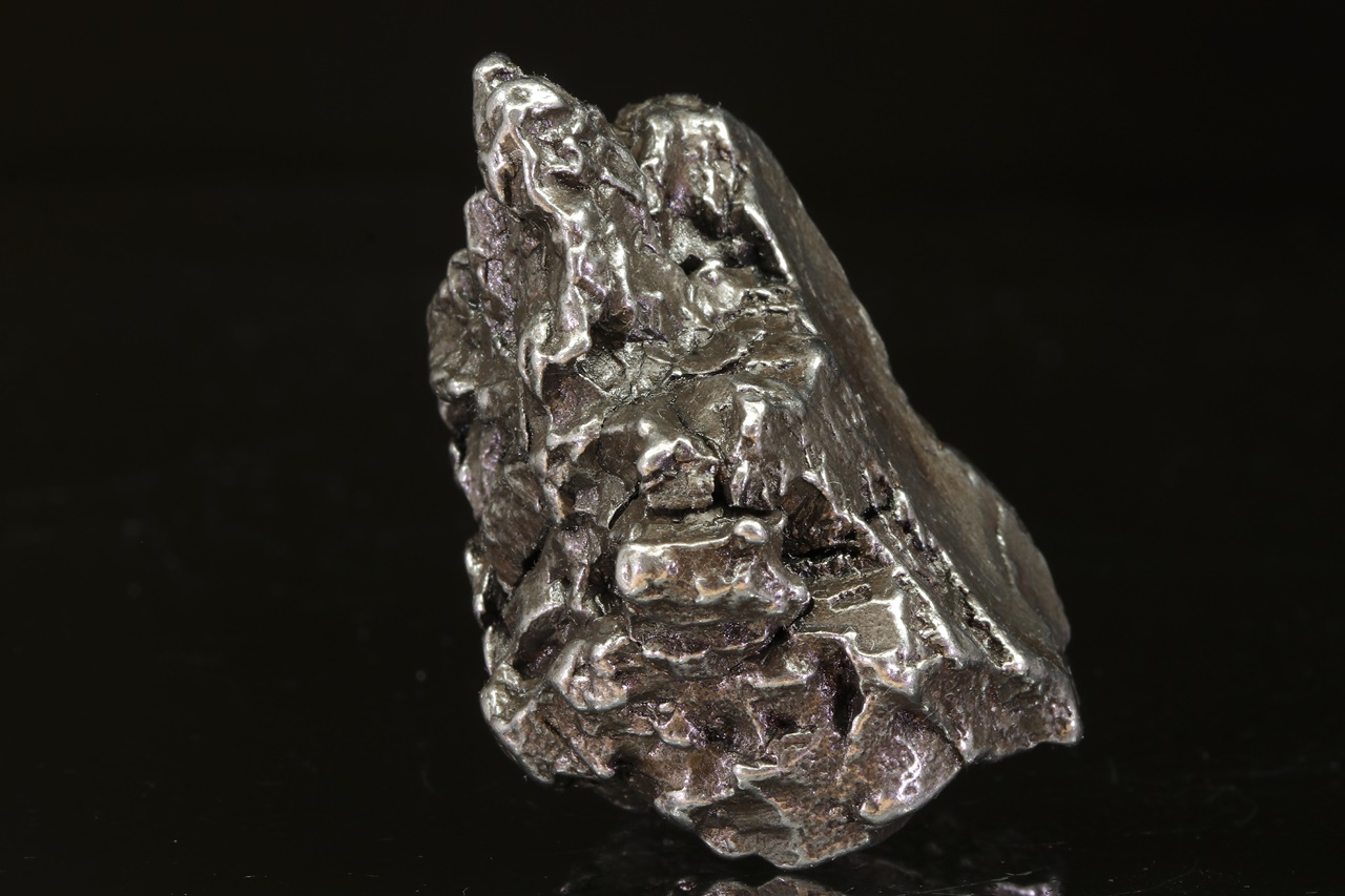 Sběratelský kus železného meteoritu s velmi hezkým členitým povrchem, jenž dopadl do oblasti severní Argentiny před 4 až 6 tisíci lety.