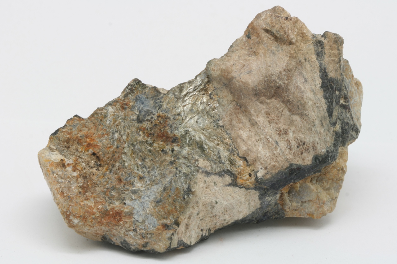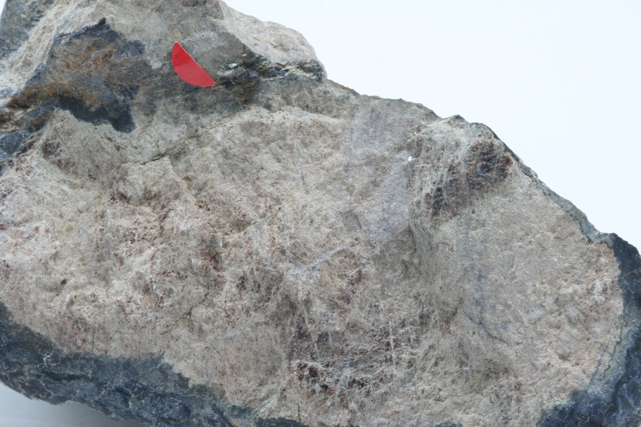 Großes Korn beige-braunen Phosphats von Mangan – Triplit mit kleinen schwarzen Kristallen von Zirkon.