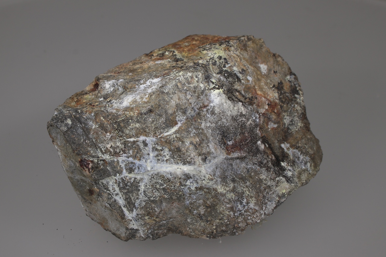 Povlaky aus weißem Uranylkarbonat, Zink und Kalzium von der Typlokalität. Das Mineral leuchtet grün unter UV-Licht.
