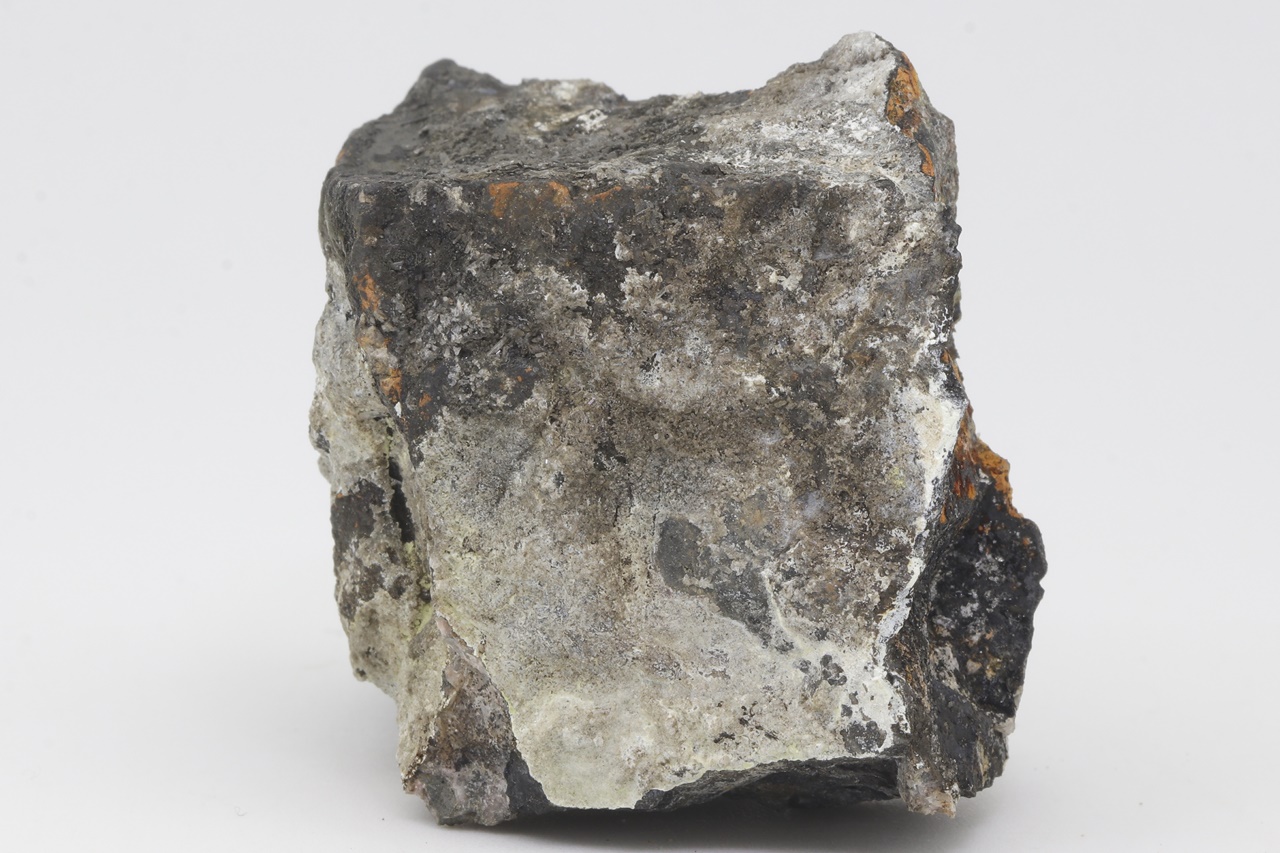 Beschichtungen von weißem Uranylkarbonat aus der Typlokalität. Die Stufe leuchtet unter UV-Licht .