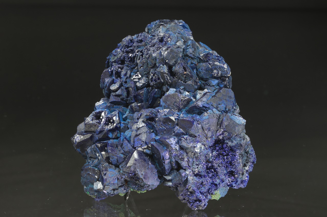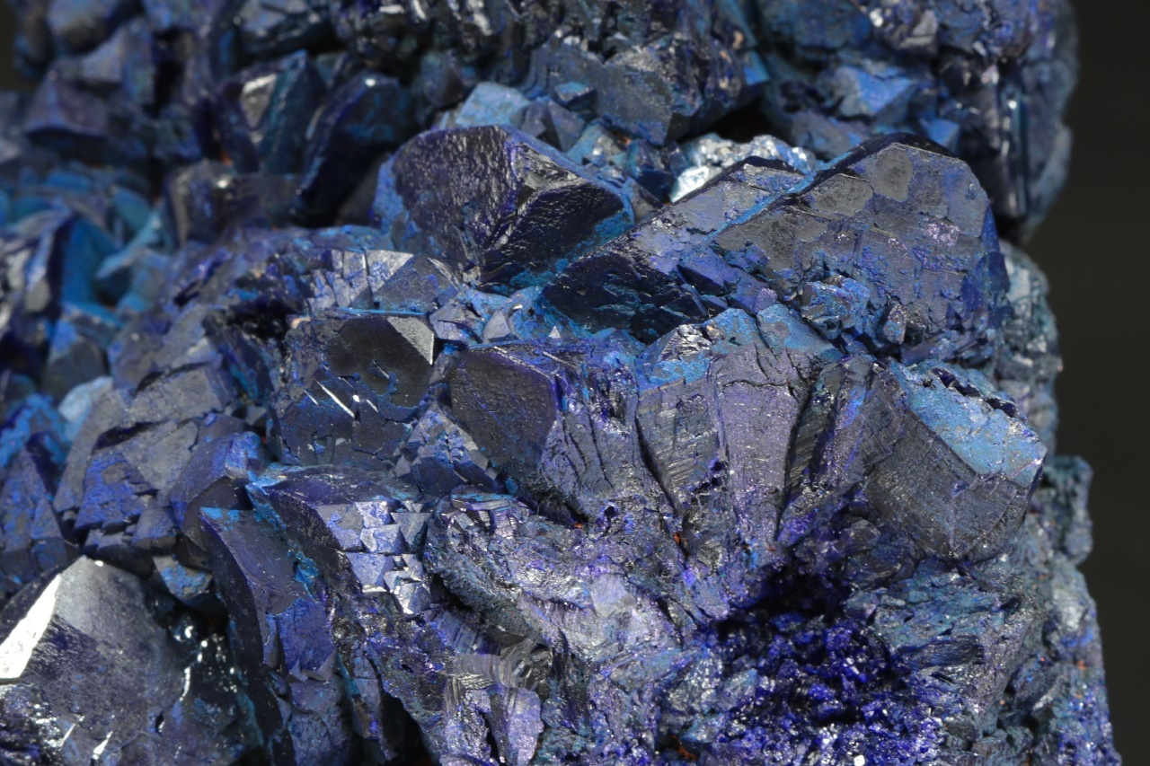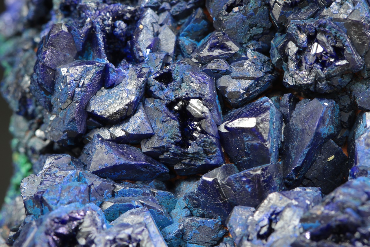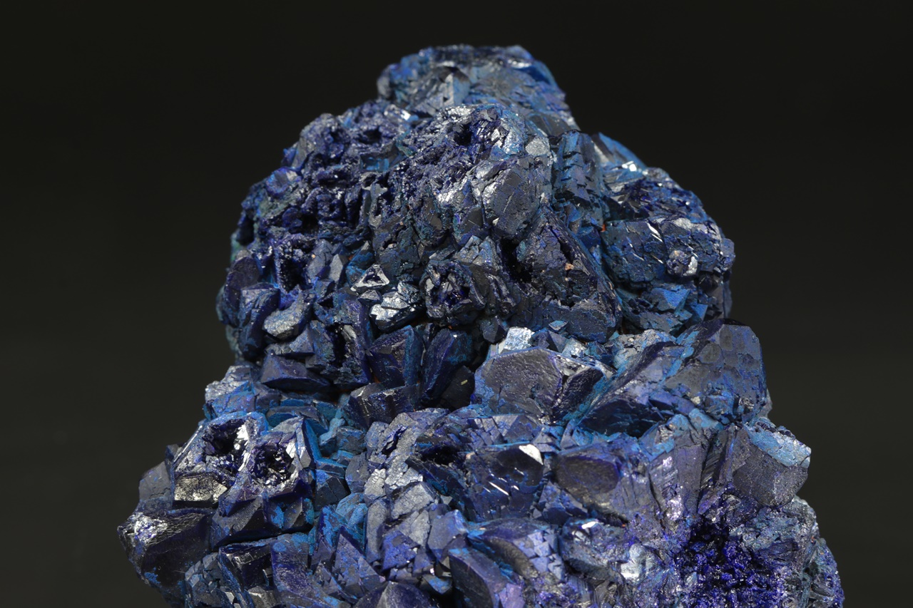 Velká drúza sytě modrých, lesklých krystalů azuritu z vyhlášené marocké lokality. Největší krystal je 1,5 cm velký.