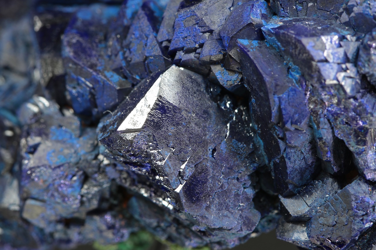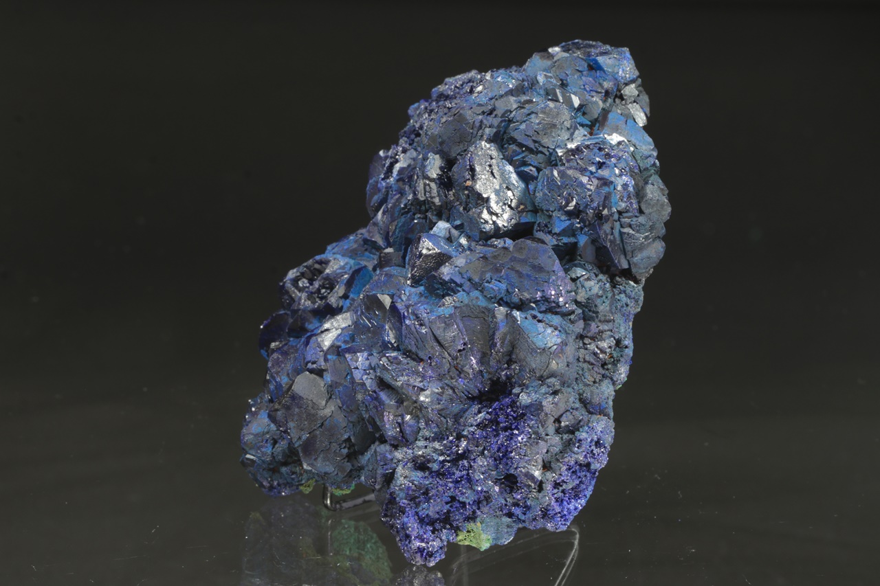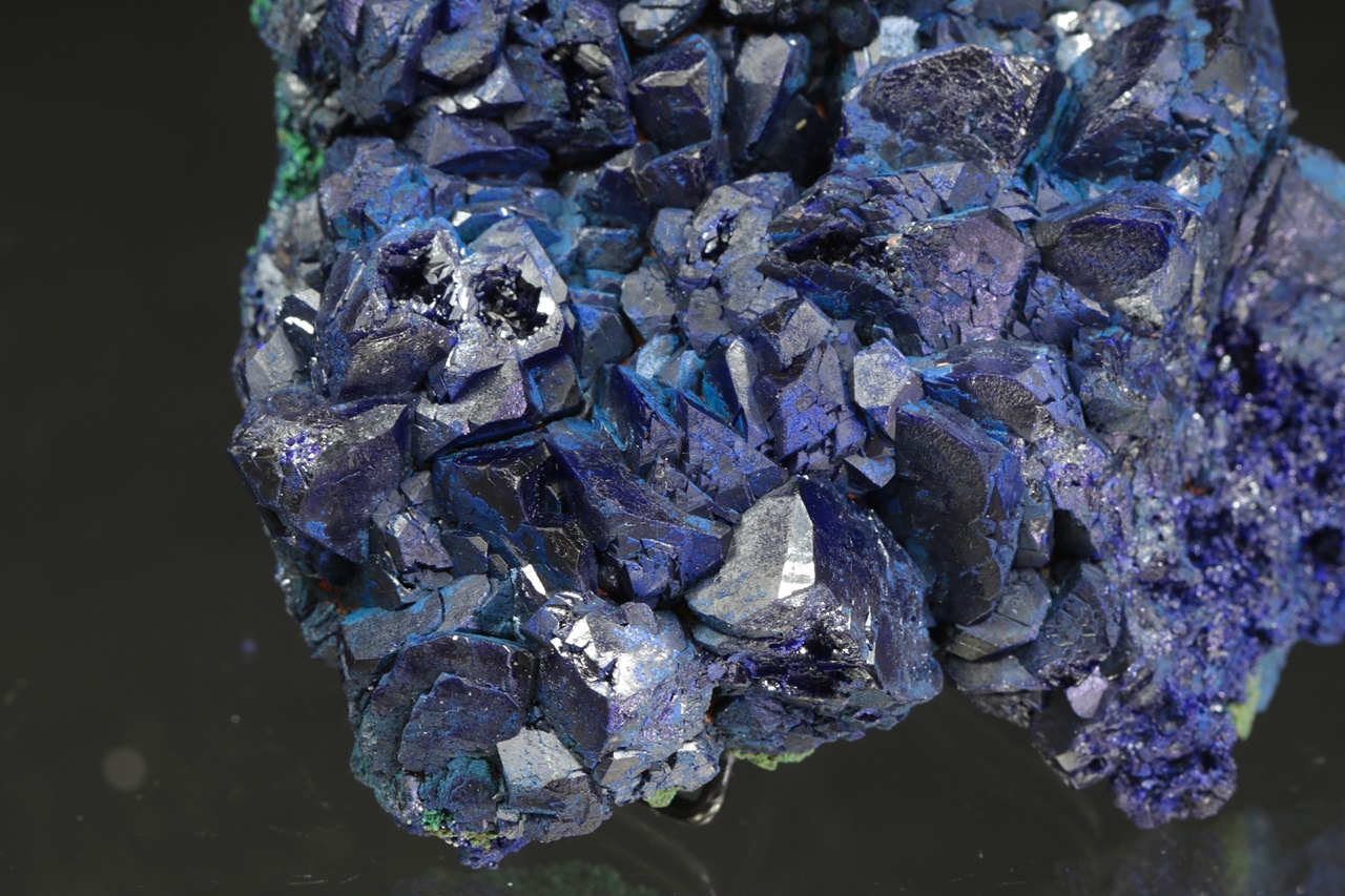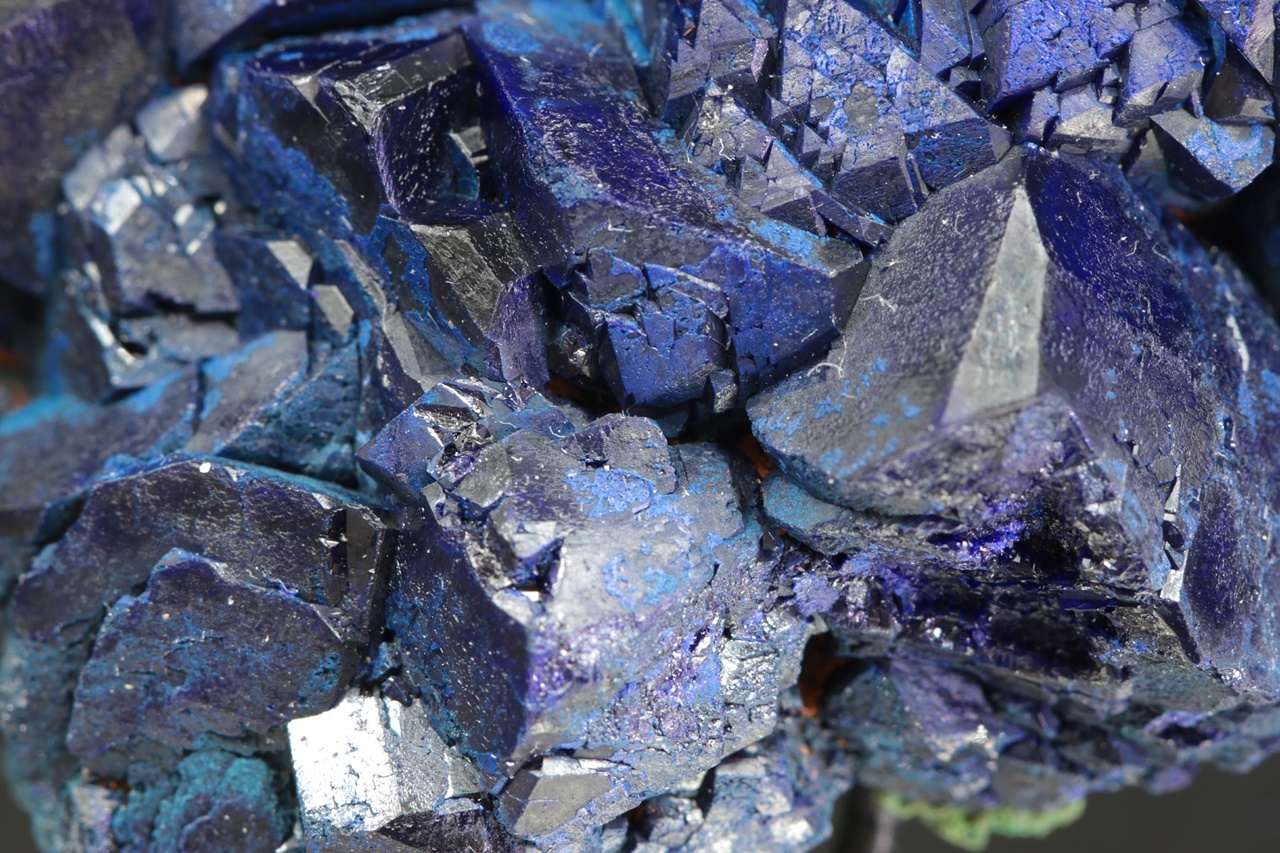 Velká drúza sytě modrých, lesklých krystalů azuritu z vyhlášené marocké lokality. Největší krystal je 1,5 cm velký.