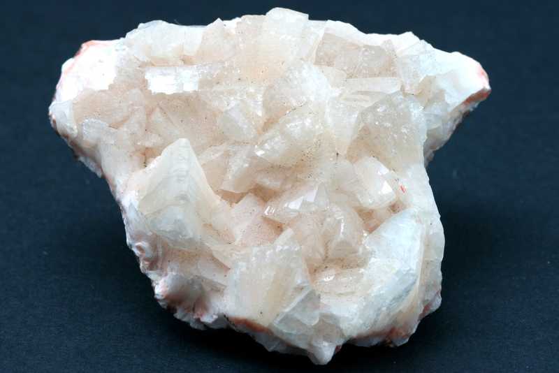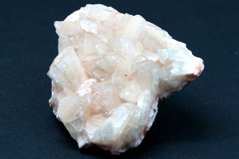 Ästhetischer Heulandit aus Nasik, Indien. Eine Probe von glänzenden Kristallen des klaren Heulandits, die Probe ist gebrochen und geklebt.