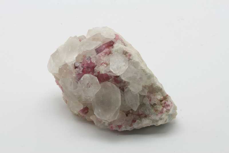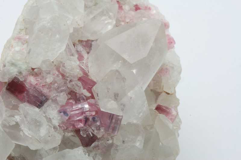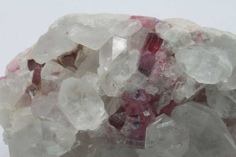 Reicher Fund von Elbait und Bergkristall. Kristalle von Elbait (bis zu 9 mm) mit Kristallen von Bergkristall (bis zu 19 mm).