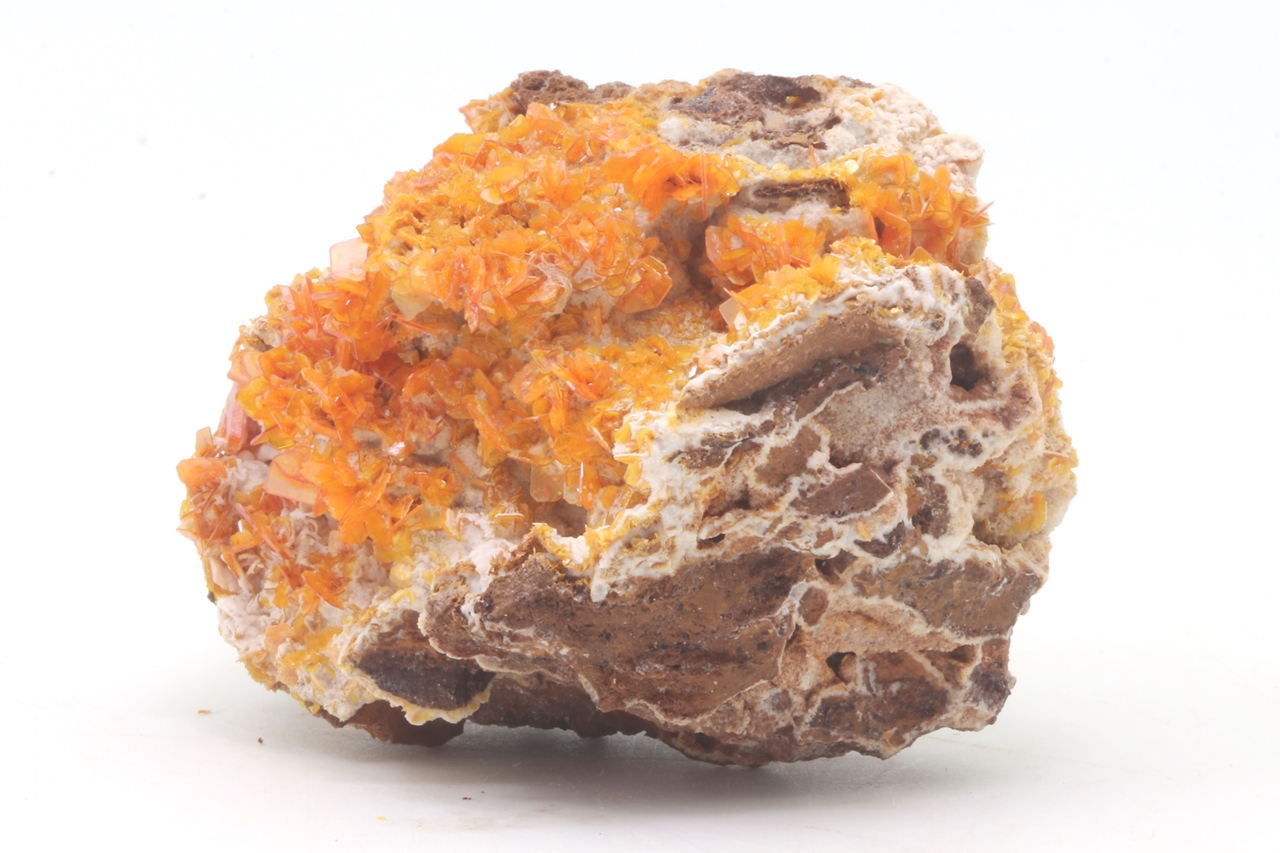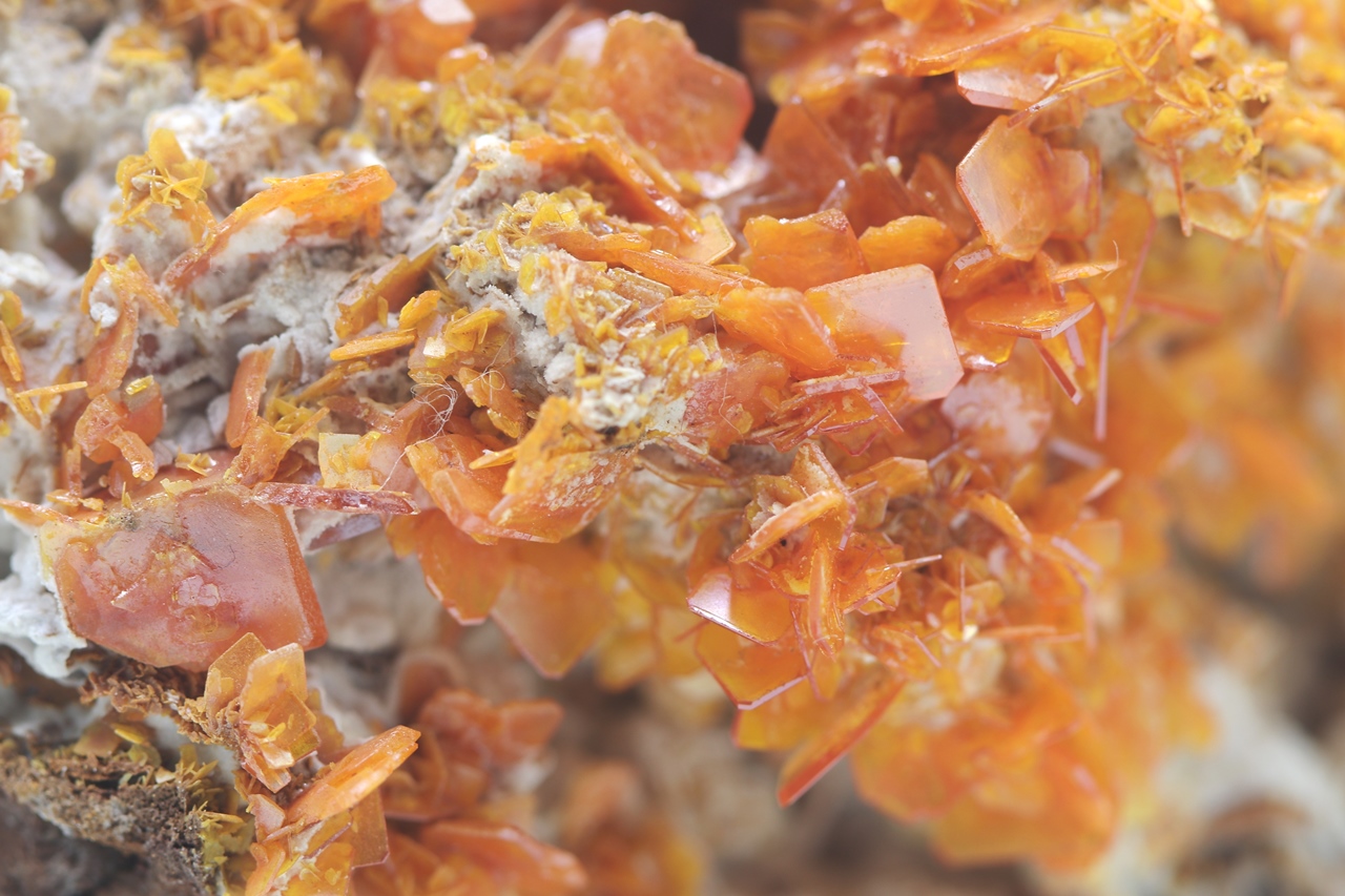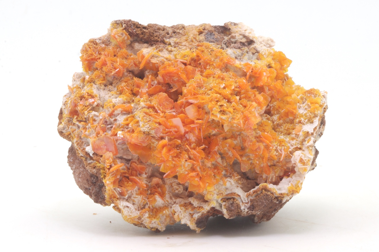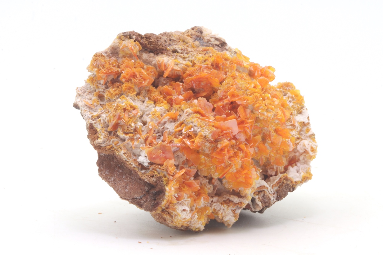 Satt orangefarbener Wulfenit aus dem Iran beeindruckt mit bis zu 1 cm großen Kristallen mit hohem Glanz.