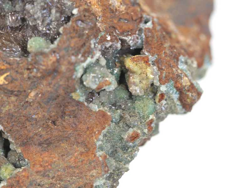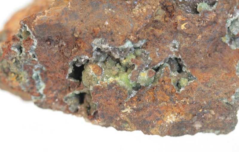 Eine ziemlich reiche Probe von Zinkarsenat – Adamit aus der griechischen Lokalität Kamariza. Eine schöne Probe von grünen kugelförmigen Adamit-Aggregaten, die in kleinen Hohlräumen gewachsen sind .