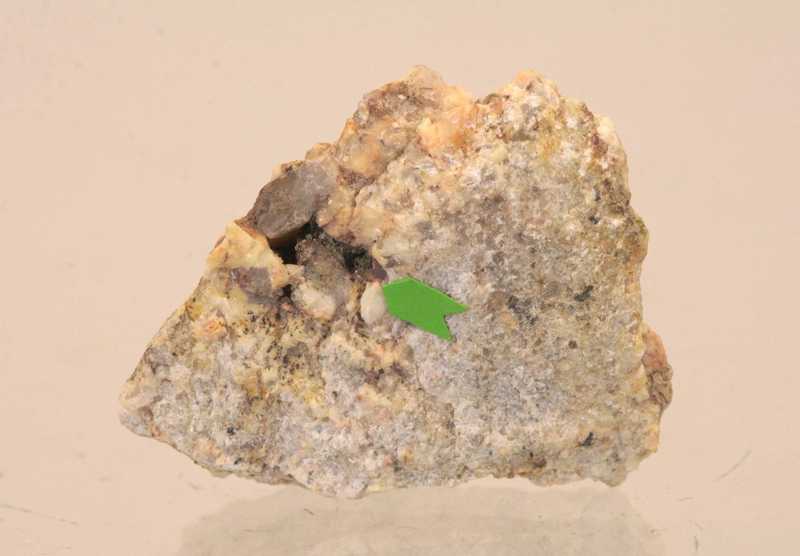 Probe des seltenen Silikats Julgoldit-(Fe2+) aus Sardinien. Probe kleiner grüner bis schwarzgrüner Julgoldit-(Fe2+)-Kristallen aus Italien.