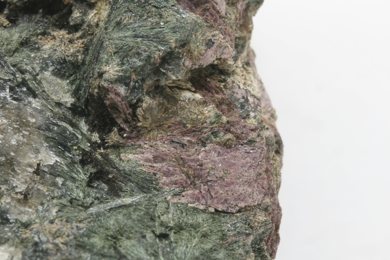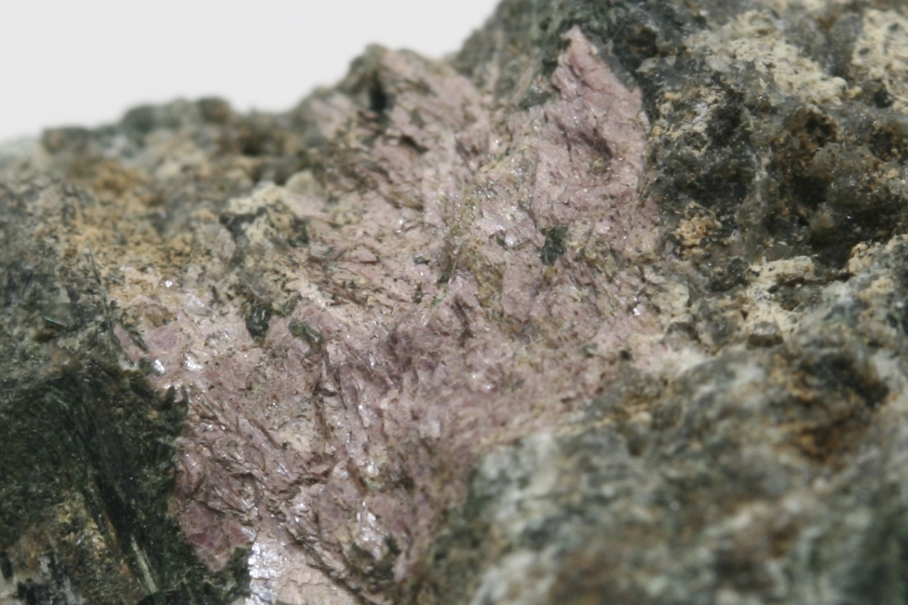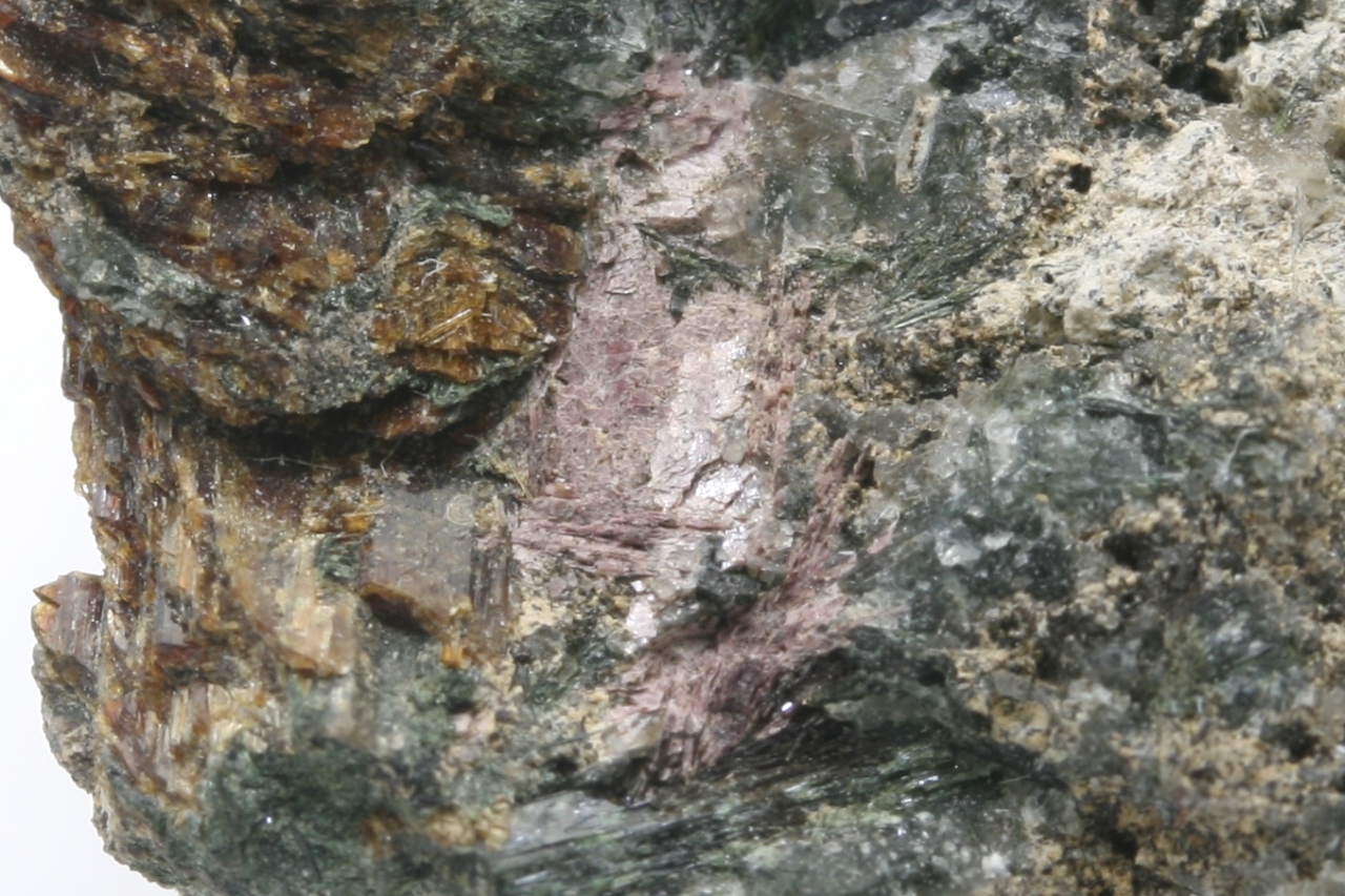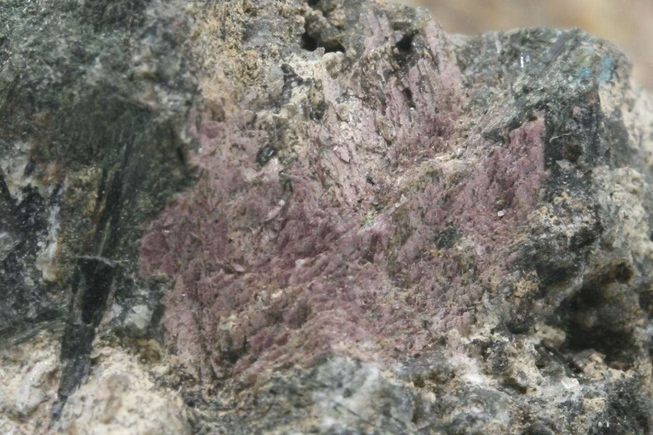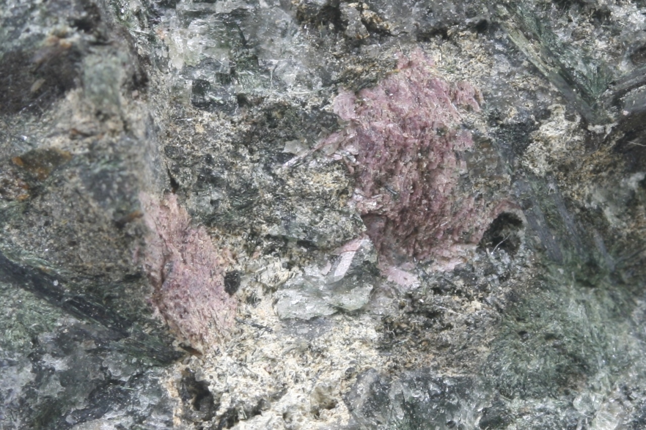 Rosa, schuppig aussehende Kristalle eines seltenen Silikats aus der Typlokalität.
