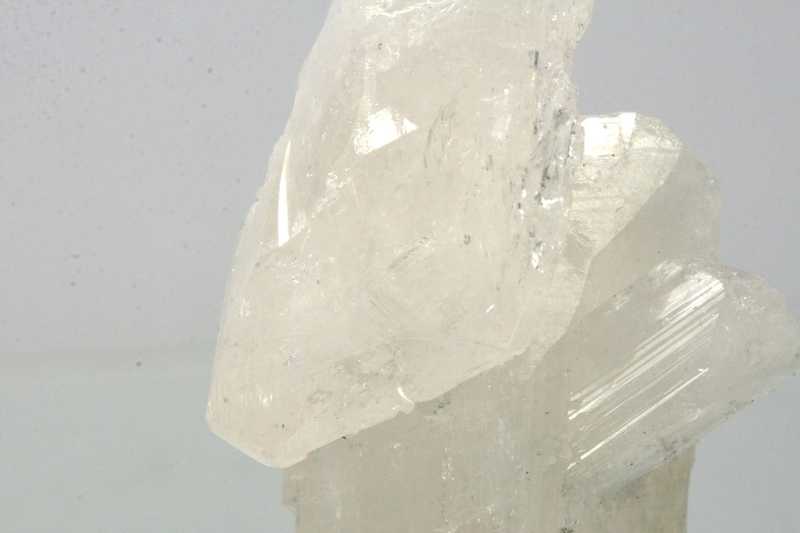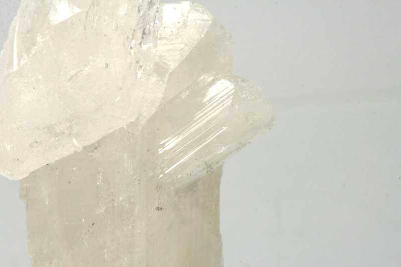 Ästhetisches Exemplar von Kristallen des nicht allzu häufigen Calcium-Borosilikats Danburit aus Mexiko. Hochwertiges Exemplar eines Clusters aus drei fast klaren gerillten Danburit-Kristallen aus Mexiko .