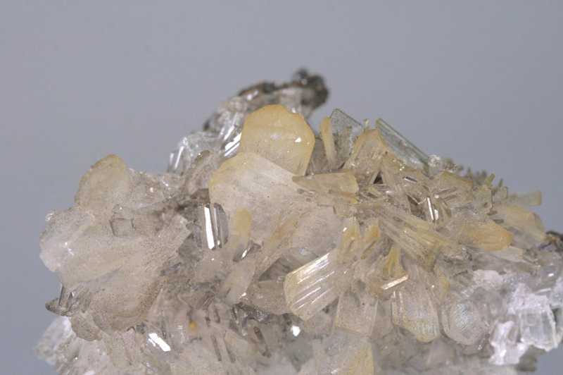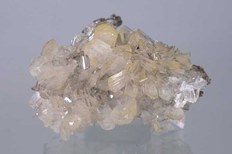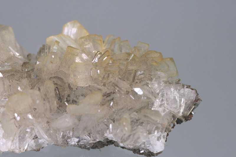 Sehr ästhetisches Exemplar perfekt entwickelter Kristalle des Zinksilikats Hemimorphit aus Mexiko. Hochwertiges Exemplar farbloser, intensiv glänzender Hemimorphit-Kristalle, die eine kleine Druse bilden.