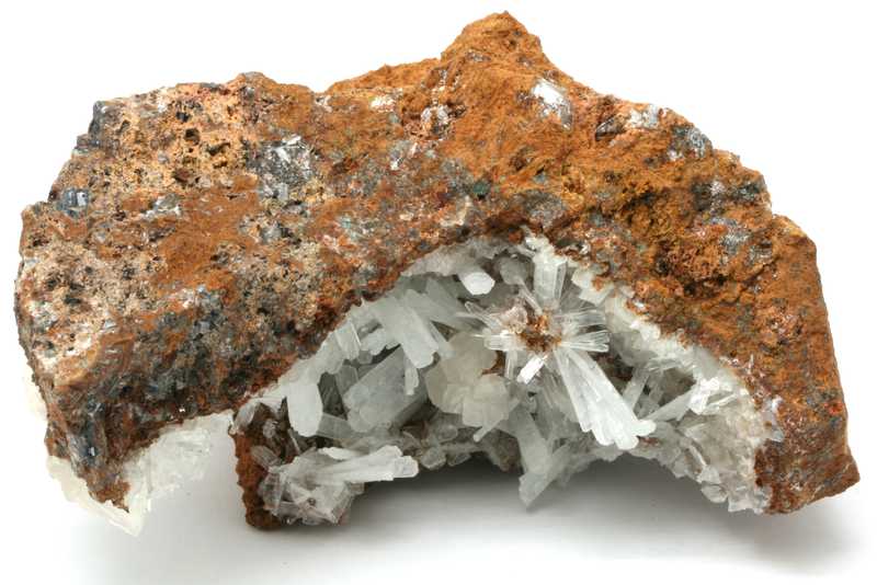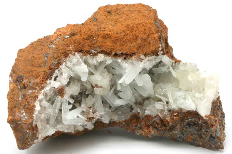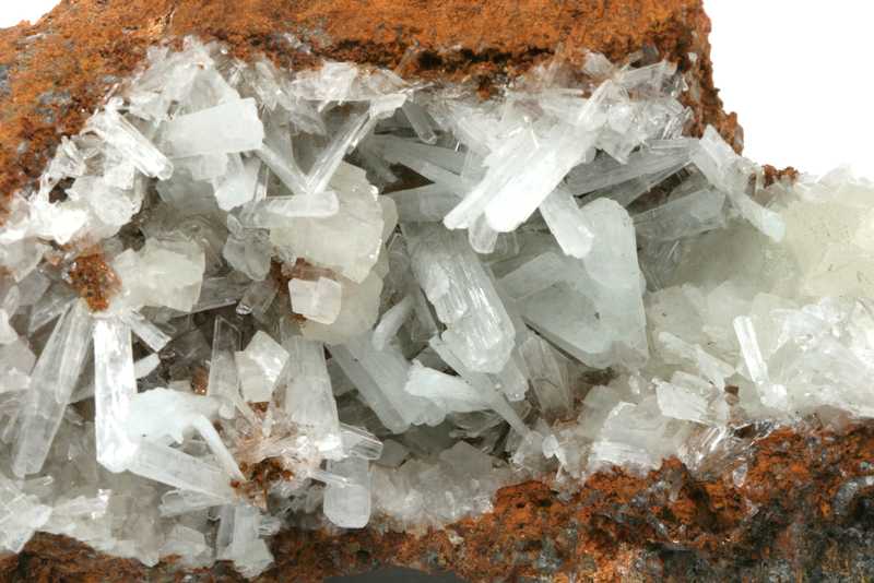 Schöne Probe von Hemimorphit aus Mexiko. Druse aus klaren Kristallen von Hemimorphit, bis zu 15 mm lang.