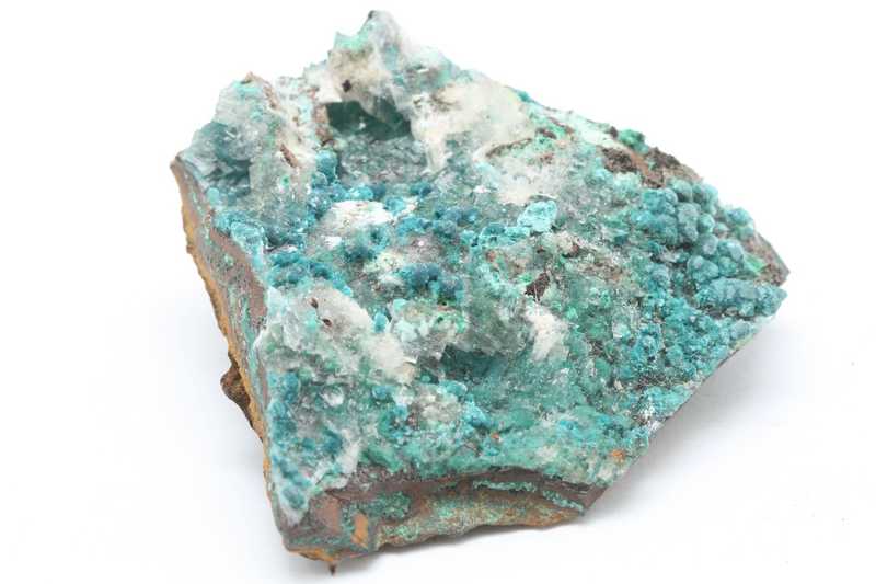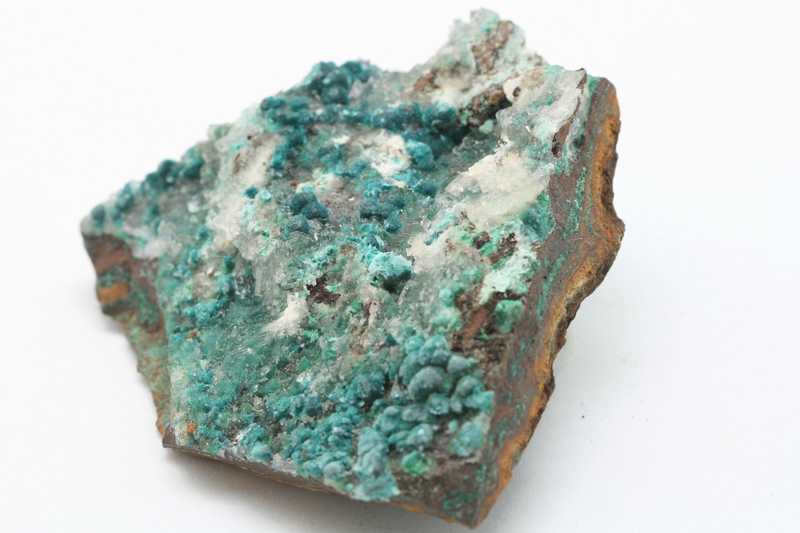 Türkisblaue Aggregate aus Kupfer- und Zinkkarbonat.. Maximal 2 mm große radiale Aggregate von Rosasit.