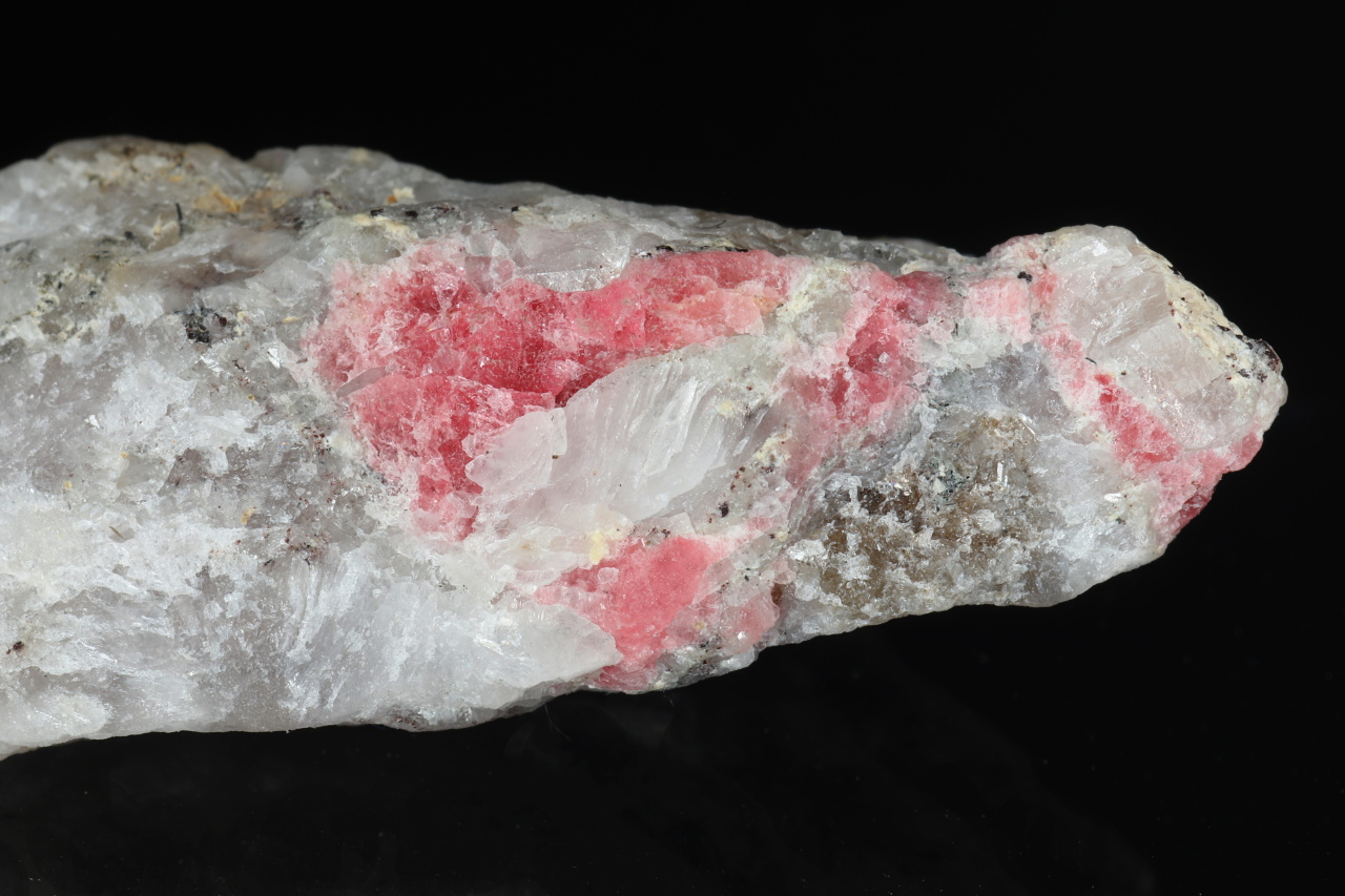 Probe eines sehr seltenen leuchtend rosa Tugtupits – eines Beryllium-Aluminium-Natrium-Silikats aus der Helvin-Gruppe vom Typlokalität Tugtup in Grönland. Eine reichhaltige Probe des Minerals, das nur an wenigen Orten auf der Welt vorkommt.