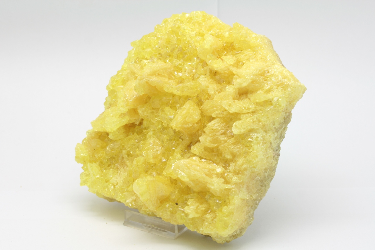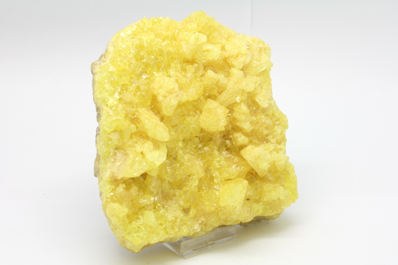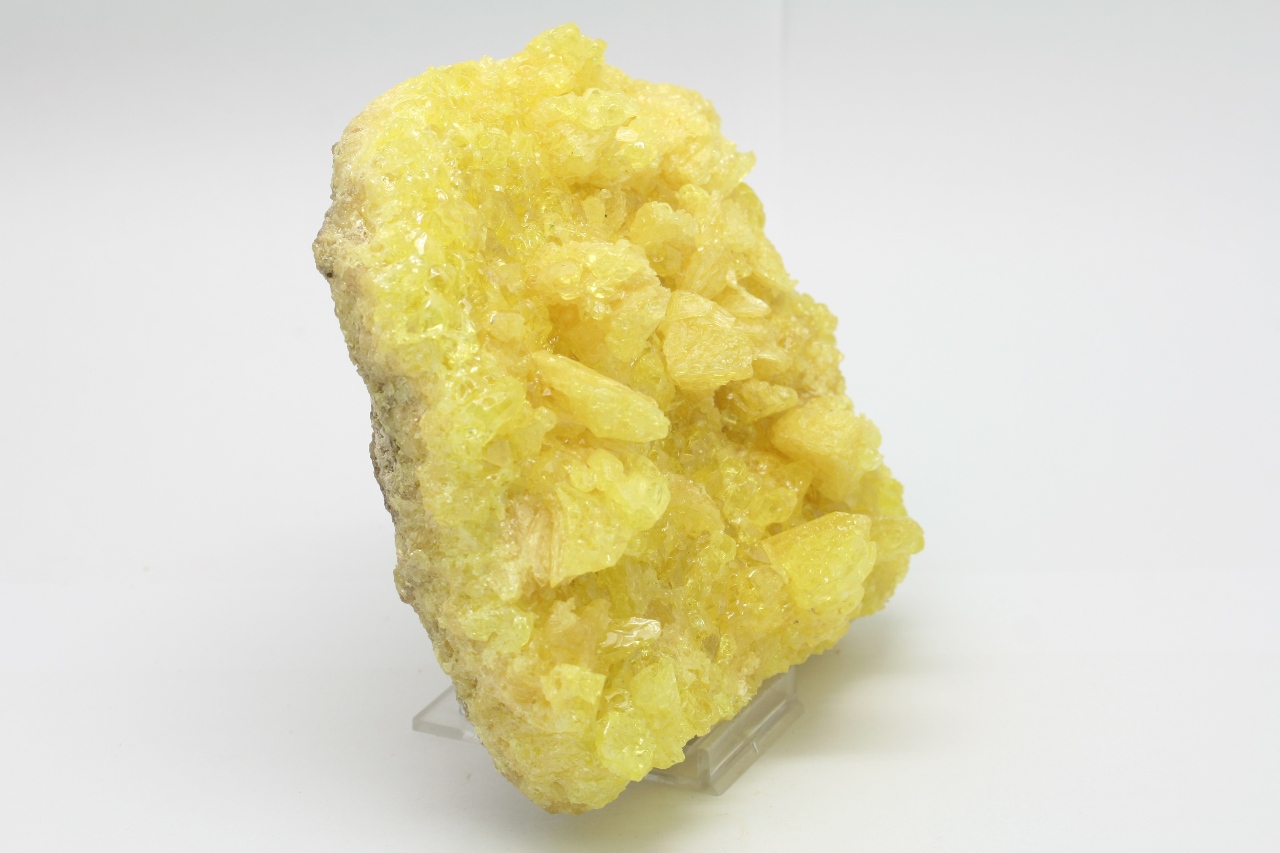 Wunderschönes ästhetisches Stück mit hochglänzenden durchsichtigen Schwefelkristallen mit skelettartigem Wachstum.