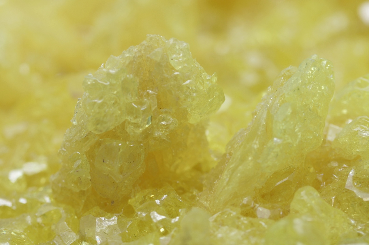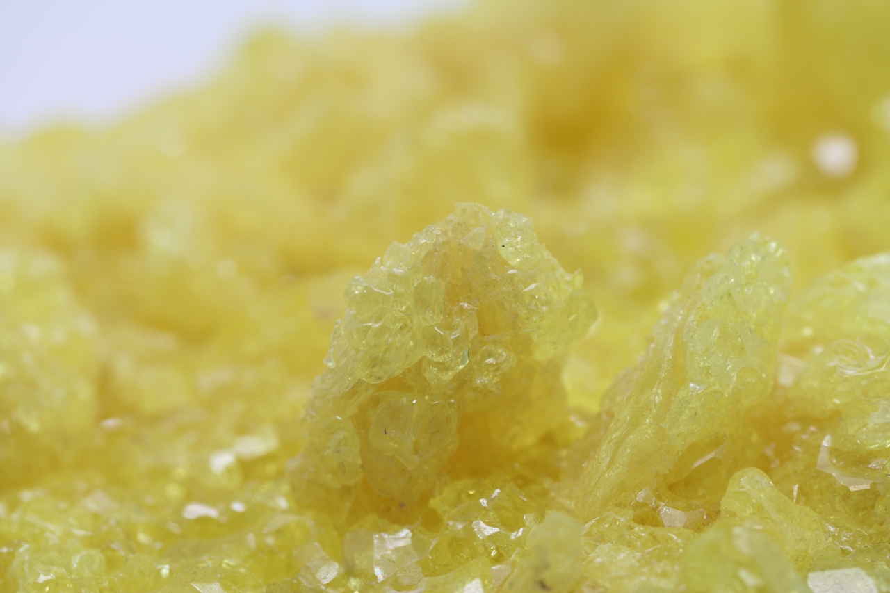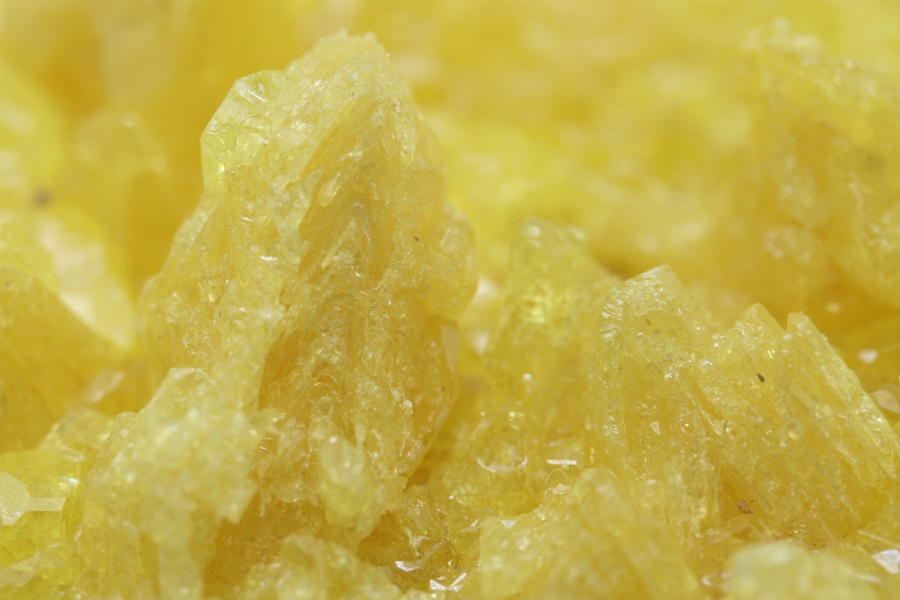 Wunderschönes ästhetisches Stück mit hochglänzenden durchsichtigen Schwefelkristallen mit skelettartigem Wachstum.