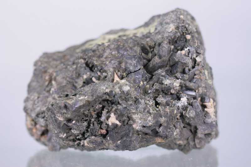 Beispiel eines kristallisierten Epidots aus Kontaktgesteinen von Žulová. Beispiel für dunkelgrüne, unvollkommen begrenzte Epidot-Kristalle.