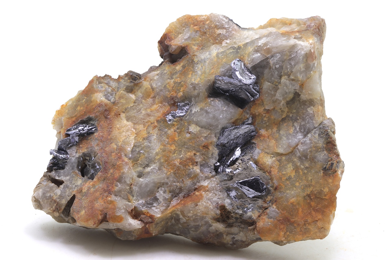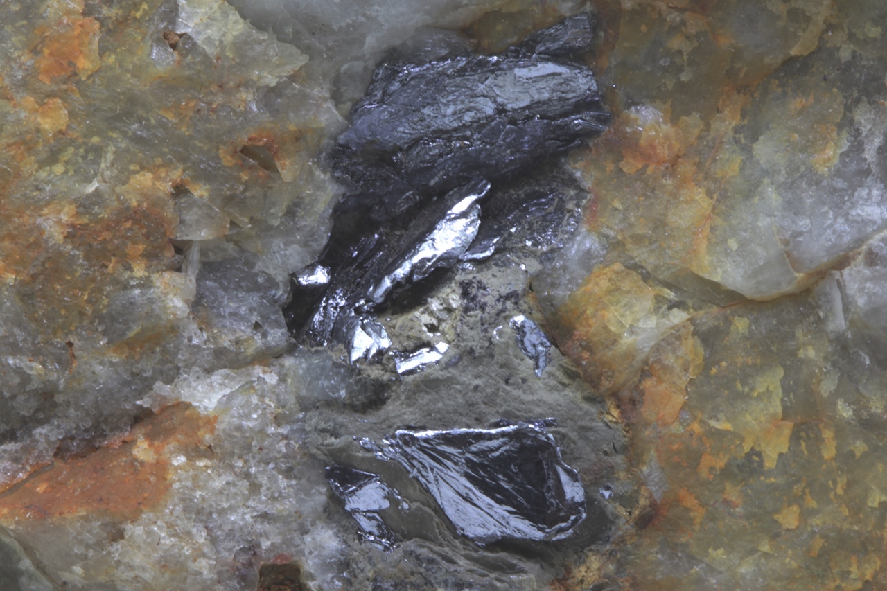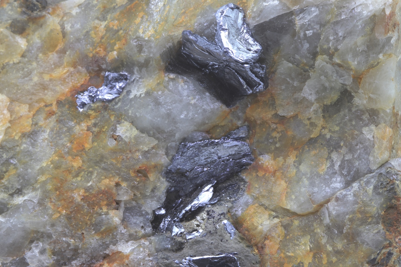 Schöner Molybdänit aus Krupka im Erzgebirge. Metallisch glänzende grausilberne Kristalle erreichen eine Größe von bis zu 1,5 cm .