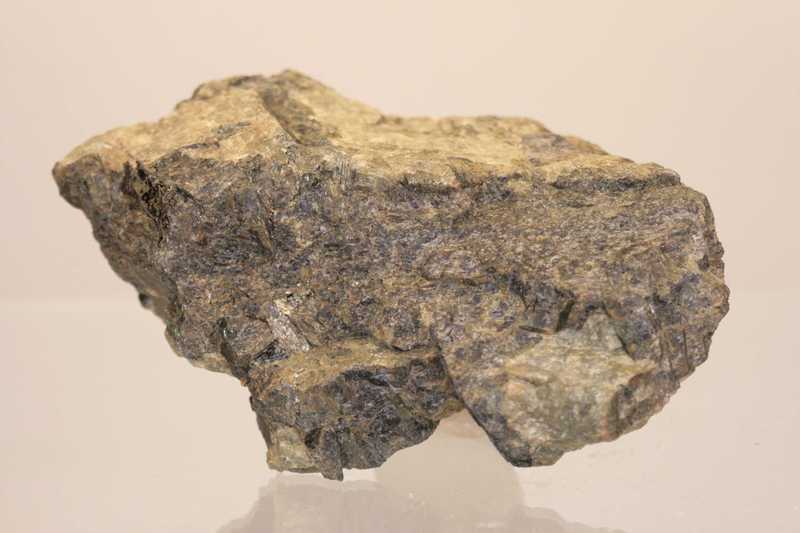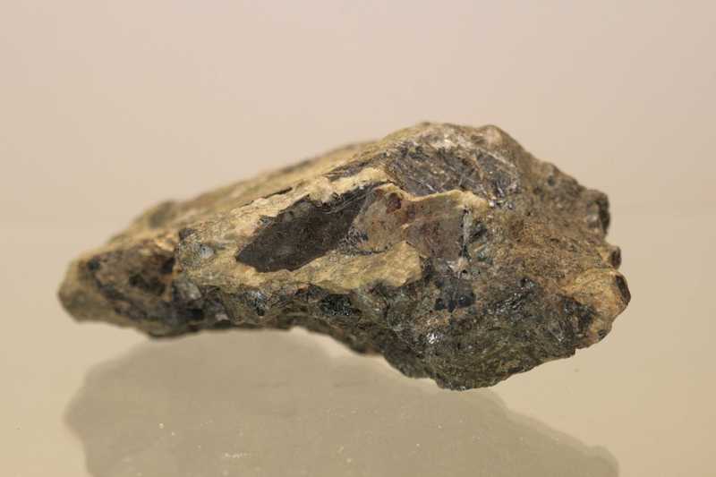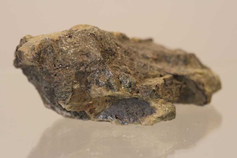 Nicht allzu häufige Stufe von Ilmenit mit Sekaninait aus Dolný Bory. Eine reiche Stufe von mehreren plattigen dunkelgrauen Ilmenit-Kristallen, die auf einer Probe gewachsen sind, die größtenteils aus massivem dunkelviolettem Sekaninait besteht; Dolný Bory ist eine typische Lokalität für Sekaninait!