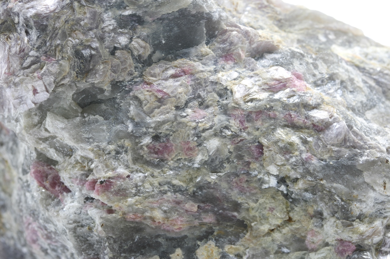 Probe von feinkörnigen, satt rosafarbenen Turmalinkristallen mit hellrosa Lepidolith.