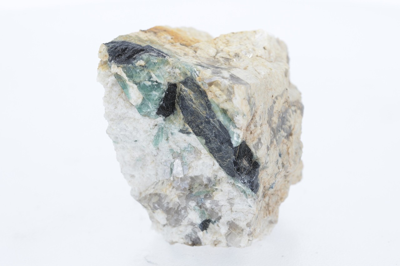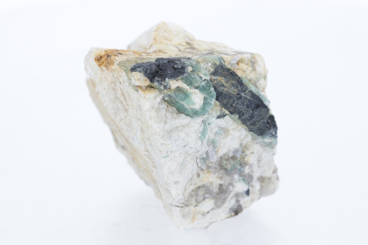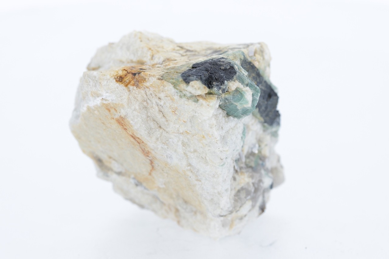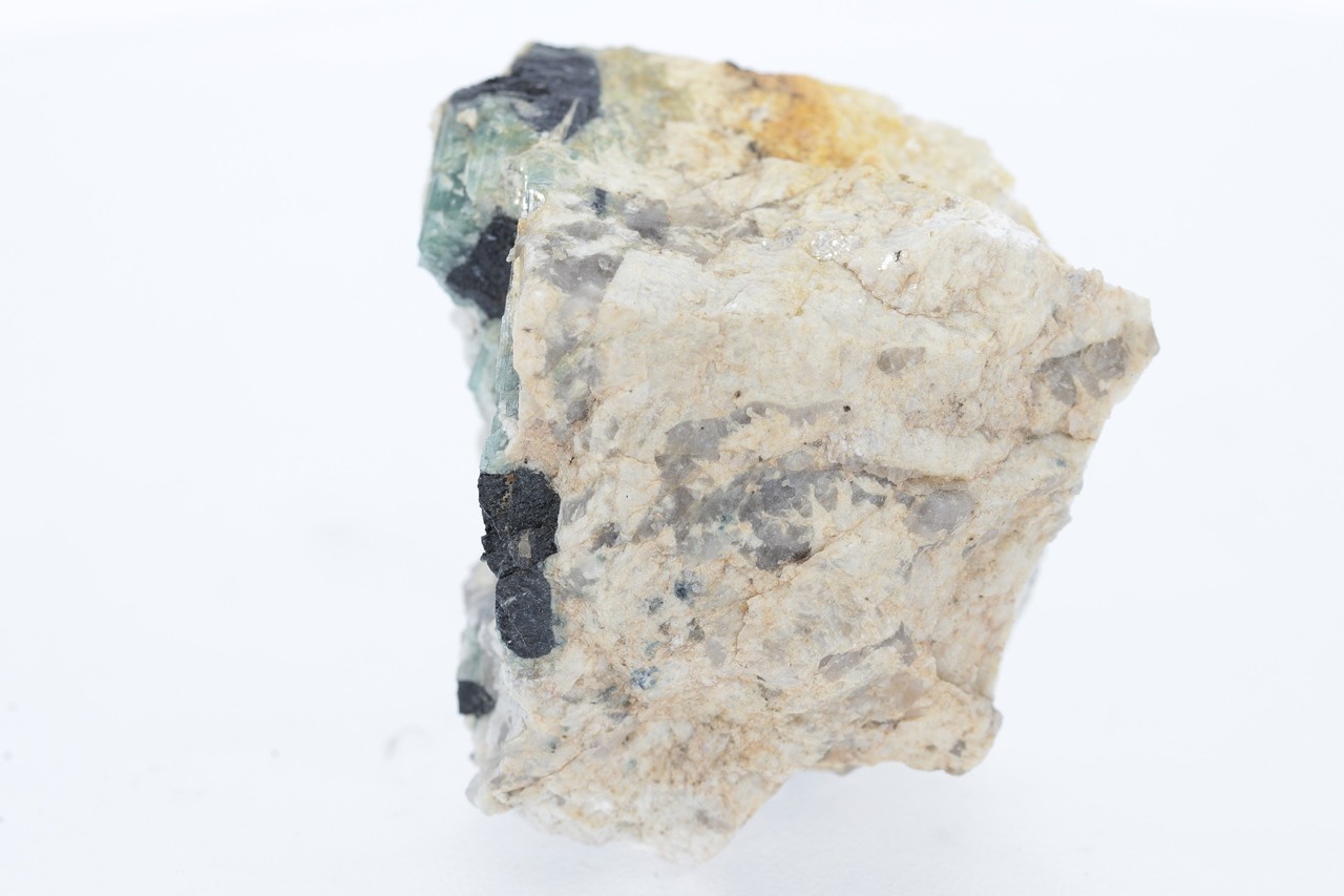 Grüne Turmalin-Varietät mit schwarzem Kern aus der südböhmischen Lokalität. Die Größe des Turmalin-Teils mit Kristallflächen beträgt 1,5 cm .