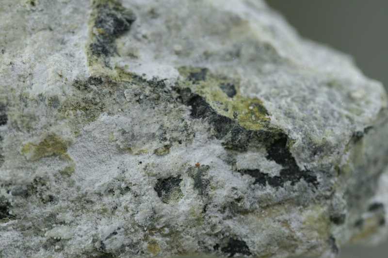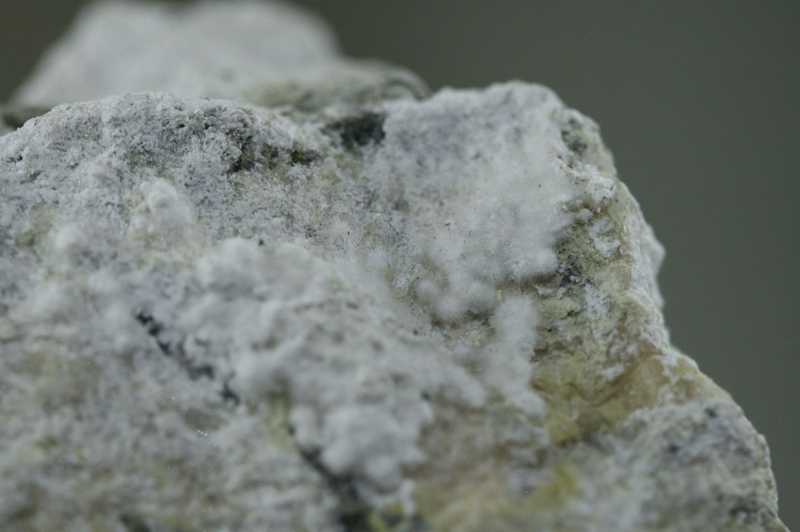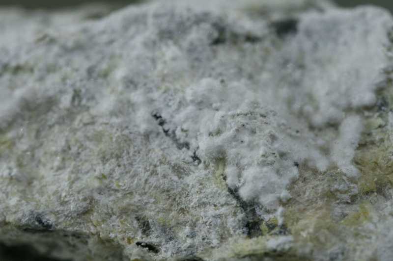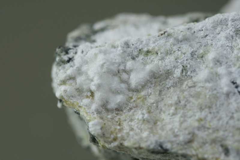 Probe von sekundären Mineralien aus Jáchymov. Probe von weißen feinnadeligen Aggregaten von Pharmakolith und Pikropharmakolith .