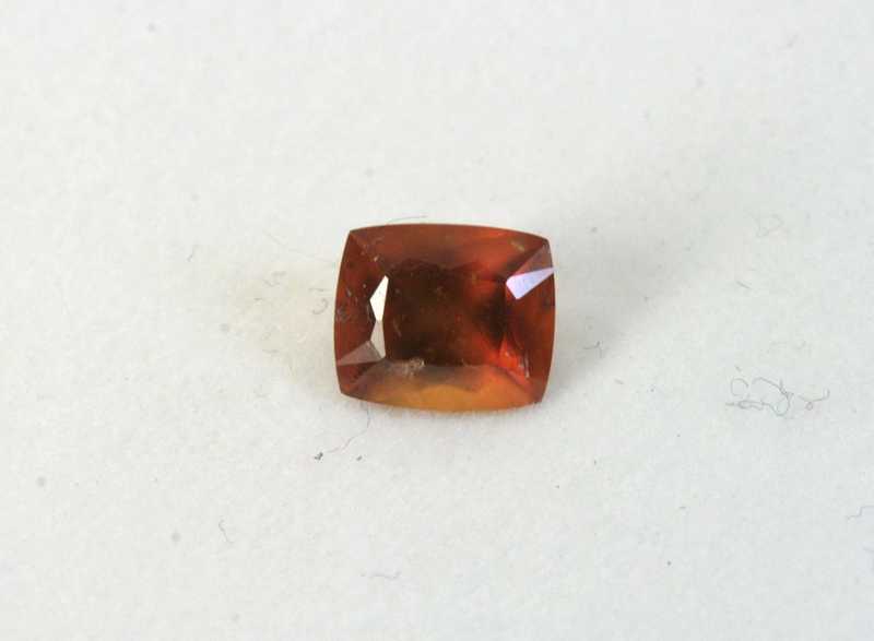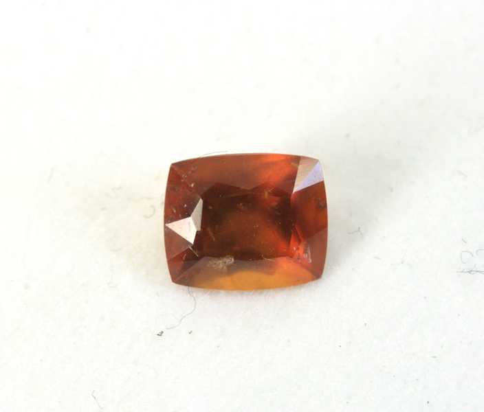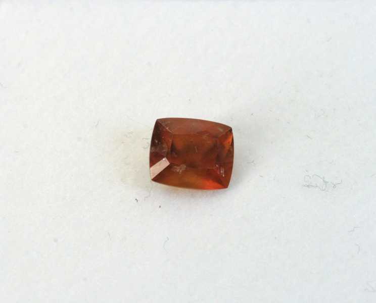 Ästhetisches Beispiel eines geschliffenen Granat-Varietät – Grosular. Sehr schöne Probe des ins Orange bis leicht ins Rote gefärbten geschliffenen Grosulars aus Mali; der Stein enthält kleine Einschlüsse. Abmessungen des Steins: 7x6x4 mm, Gewicht: 0,27 g.
