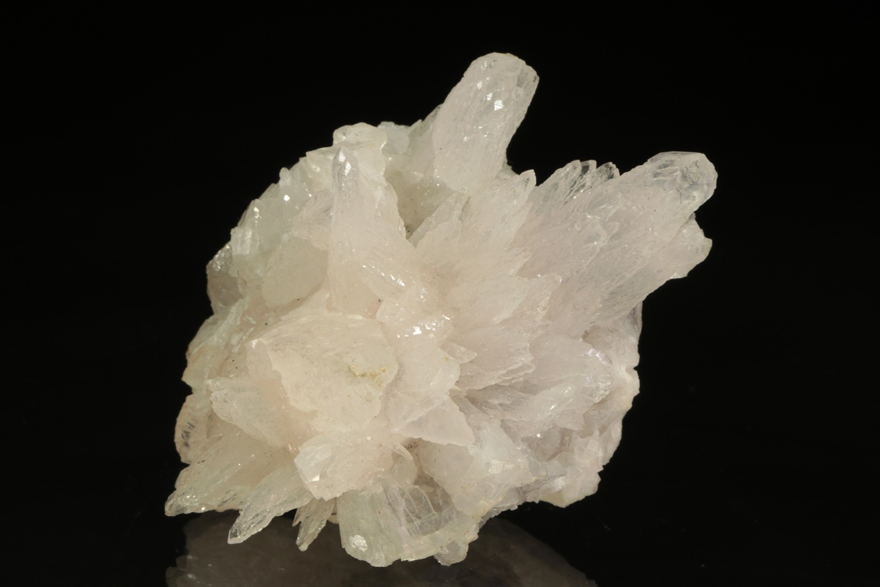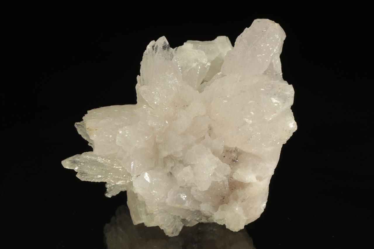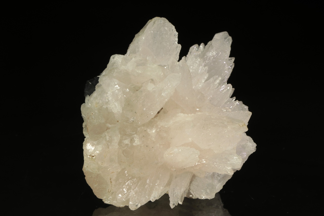 Historický vzorek, bílých lesklých krystalů kalcitu s – pro Příbram – nezvyklým habitem. Ze zadní strany jsou pak přítomny sfalerit s sideritem.
