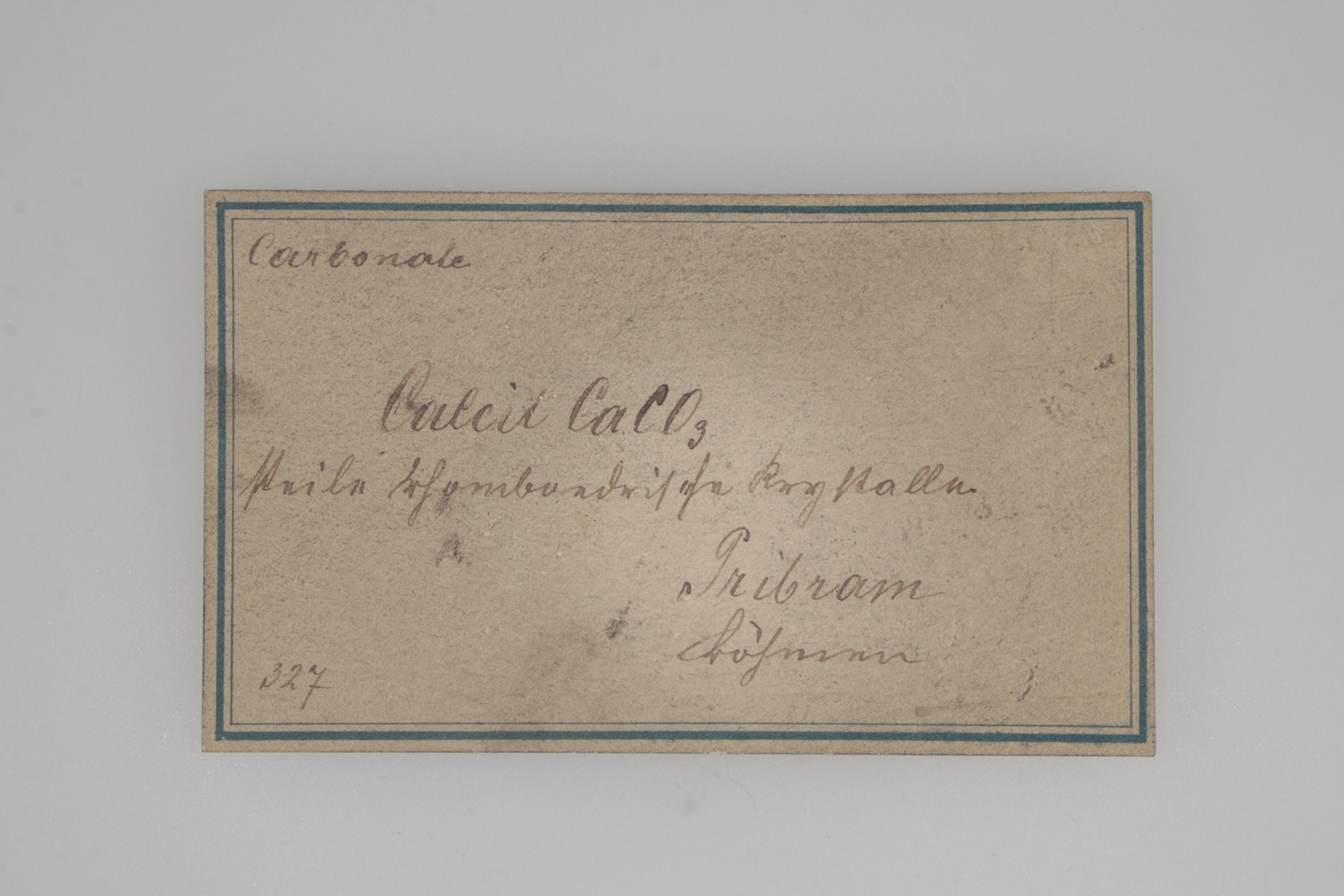 Tento minerál pochází z bývalé sbírky Dr. Karla Rechingera (1867–1952), botanika z Přírodovědného muzea ve Vídni. Sbírat minerály začal v roce 1881 a mnohé minerály z jeho sbírky se datují od tohoto roku až do první dekády 20. století.