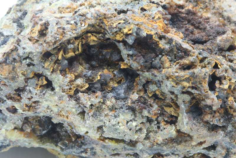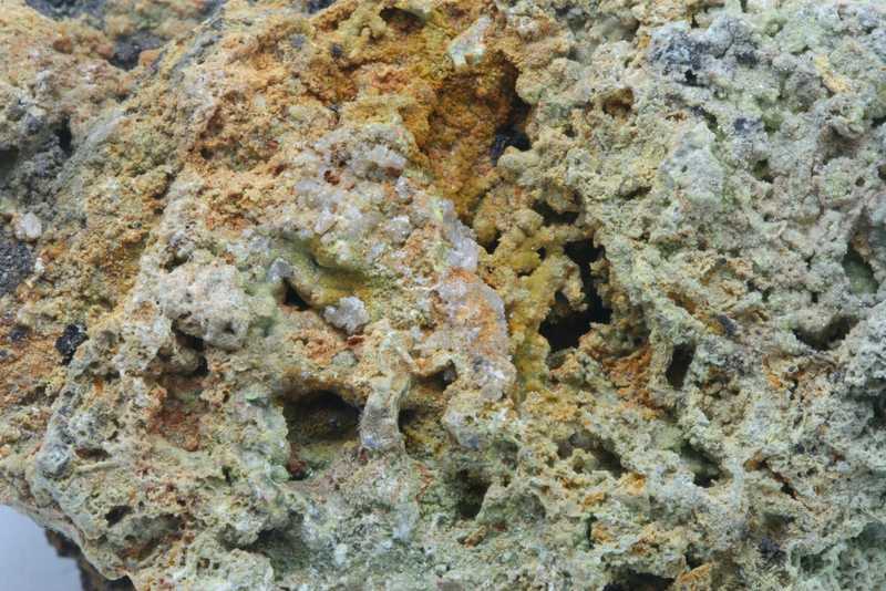 Schönes Pyromorphit-Muster von der klassischen Fundstelle Příbram. Probe bedeckt mit gelbgrünen, stellenweise rostfarbenen Pyromorphit-Kristallen.