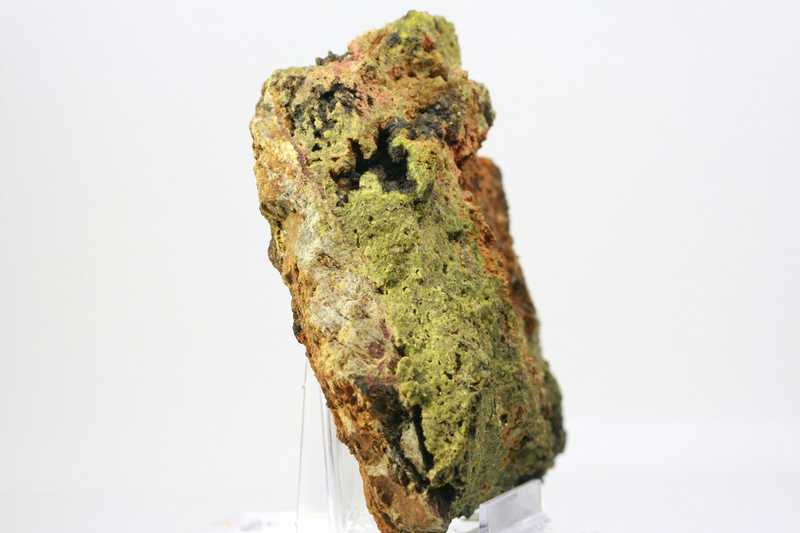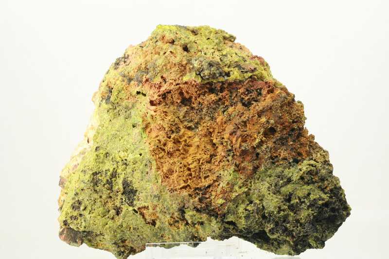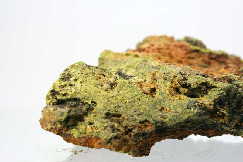 Seltene massive Stufe von Pyromorphit aus dem Bergwerk Řimbaba. Großes, über 3 Kilogramm schweres Exemplar von grünem massivem Pyromorphit, der Hohlräume mit Kristallen bis zu 4 mm bildet.
