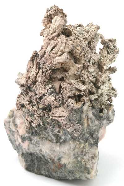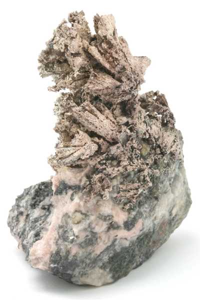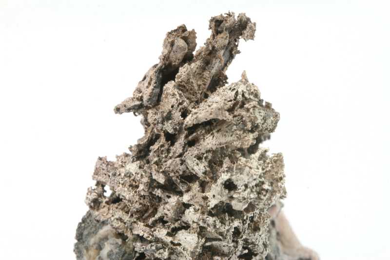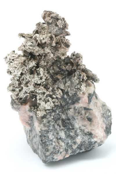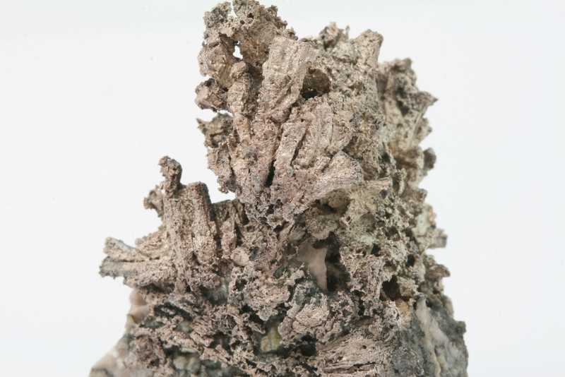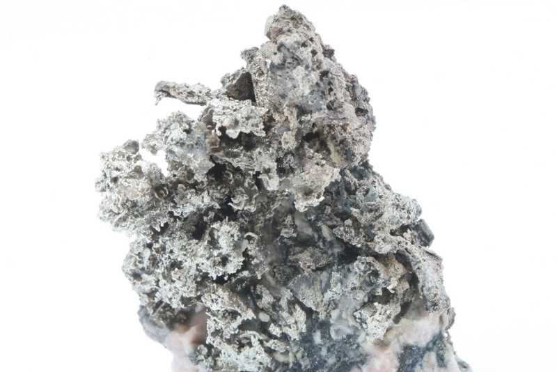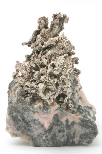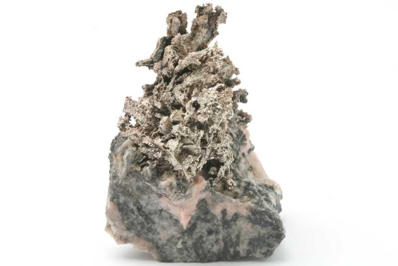 Probe mit sorgfältig geätzten Pseudomorphosen von Silber nach Dyskrazit aus dem Příbramer polymetallischen Lagerstätte. Sehr ästhetische Probe mit „Bäumchen“, gebildet durch säulenförmige Pseudomorphosen von Silber nach Dyskrazit .