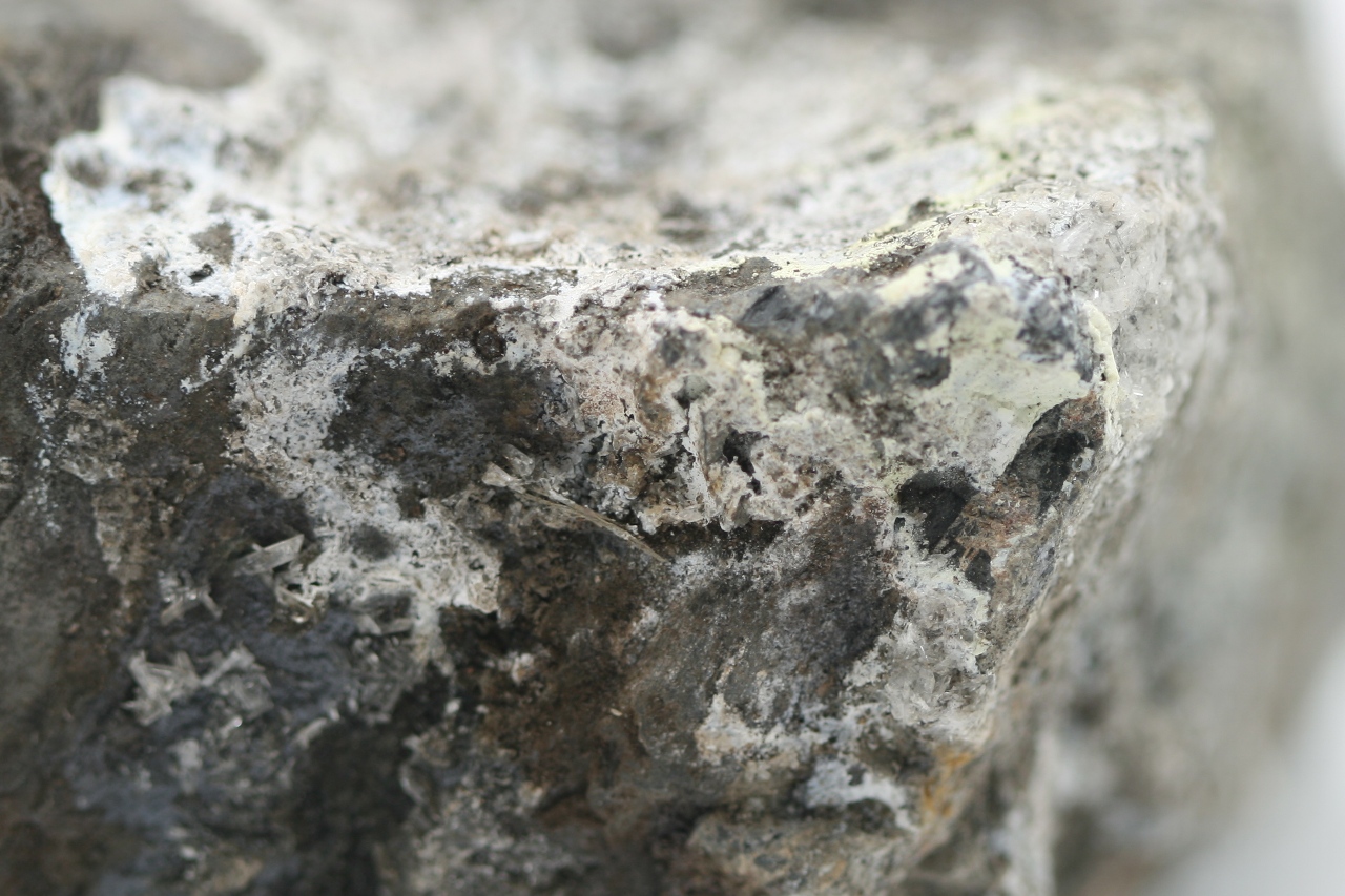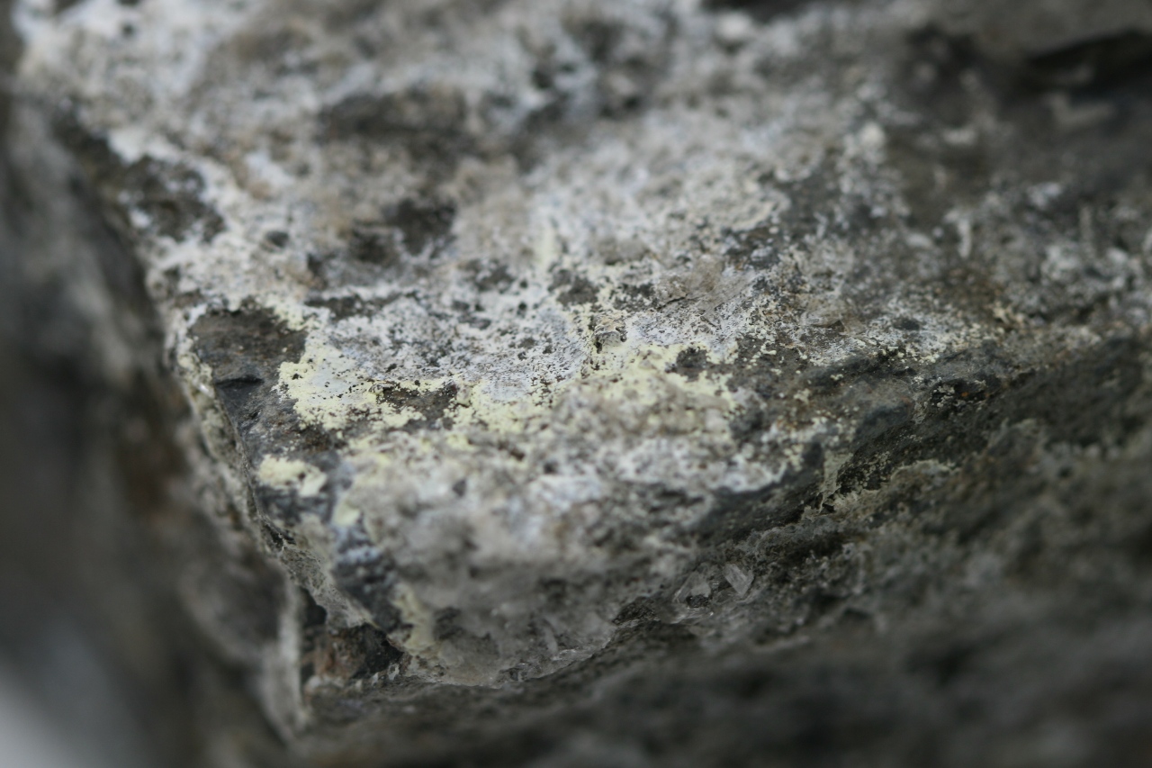 Bílo žluté povlaky velmi vzácného karbonátu Zn, U, Ca z typové lokality.
