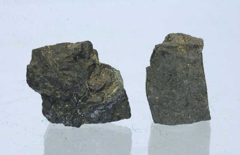 Interessante Probe von zwei Pyrhotin-Stufen aus unserer Au-Sb-Lagerstätte. Probe von zwei kleinen, vollständigen, bronzen irisierenden Pyrhotin-Aggregaten aus dem Bergbaurevier Krásná Hora; die Maße sind für die Probe angegeben, die auf dem Foto rechts zu sehen ist .