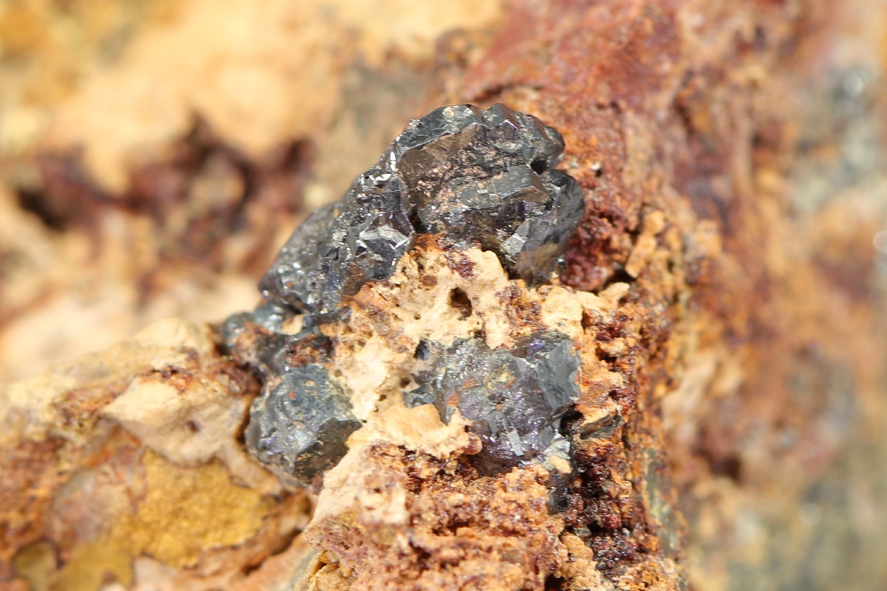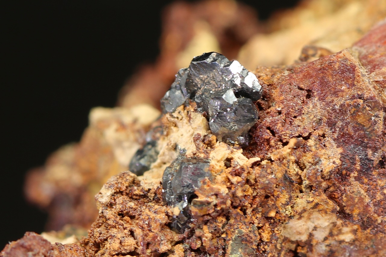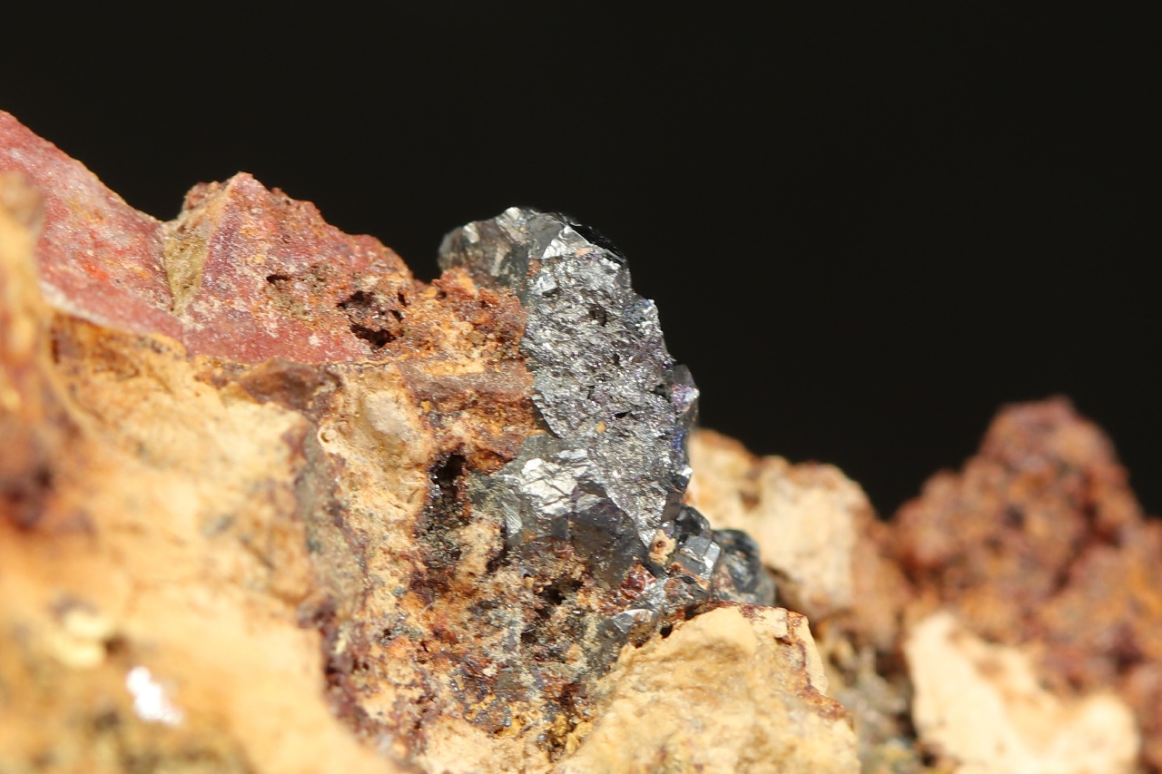 Glänzender Aggregat des Silbersulfids Stefanit, 7 mm groß.