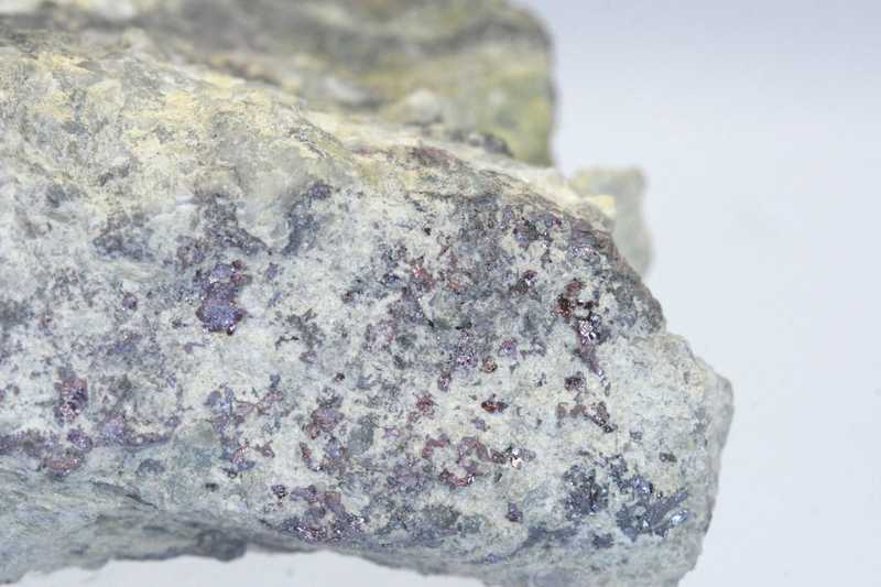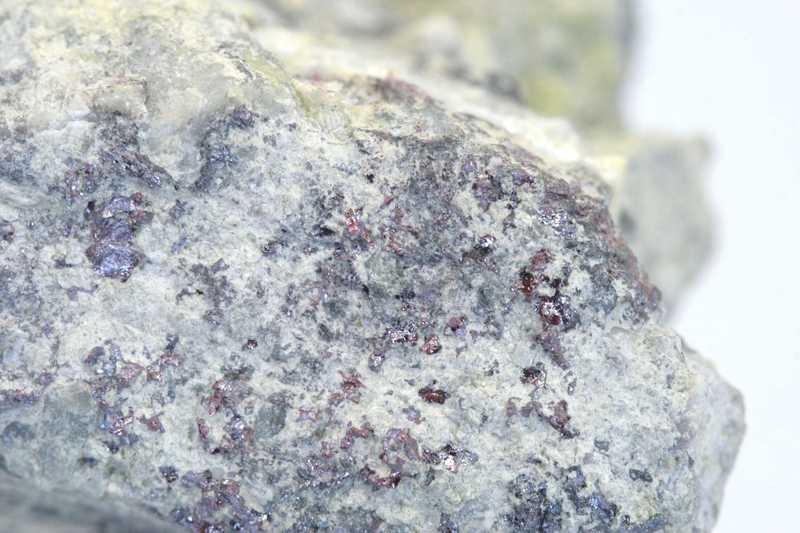 Eine sehr schöne Darstellung seltener Silbersulfide aus Jáchymov; Jáchymov ist die Typlokalität für Sternbergit. Hochwertige Probe von schwarzen Sternbergit-Kristallen mit rötlich angehauchten Aggregaten von Proustit auf einem größeren Stück Adergestein .