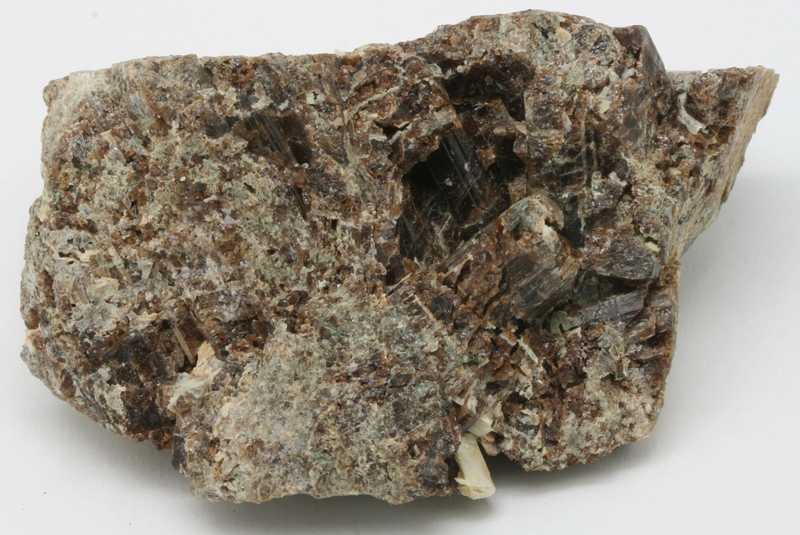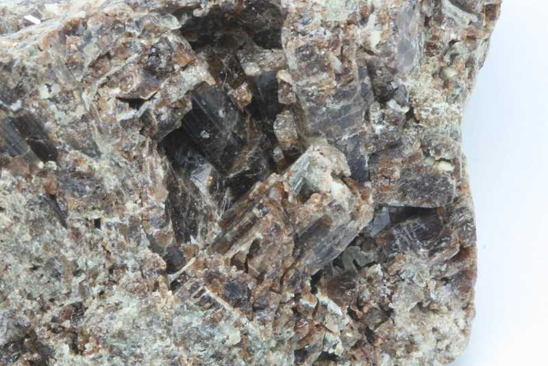 Brauner Vesuvian aus dem Fundort Hazlov. Der größte Vesuvian-Kristall ist 13 mm lang.