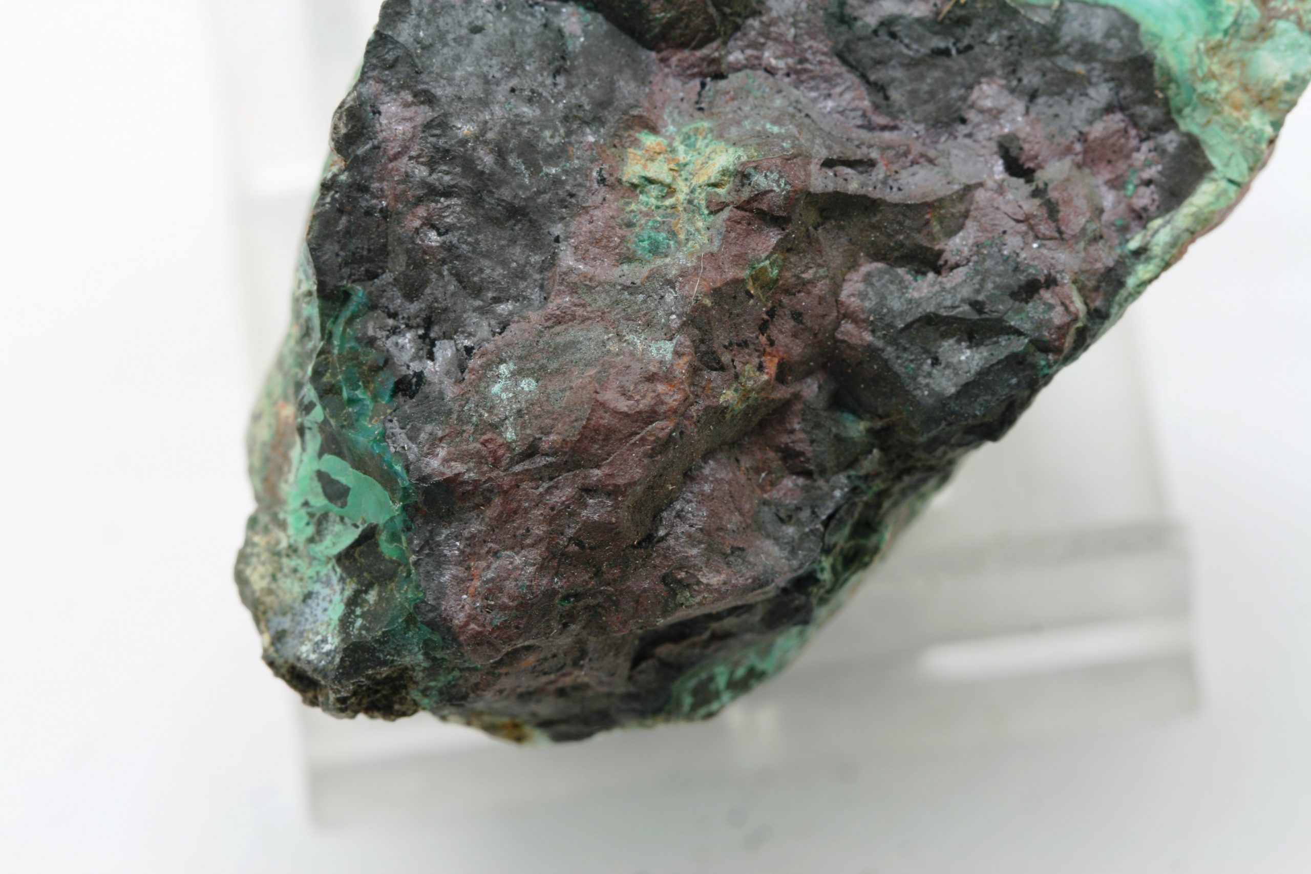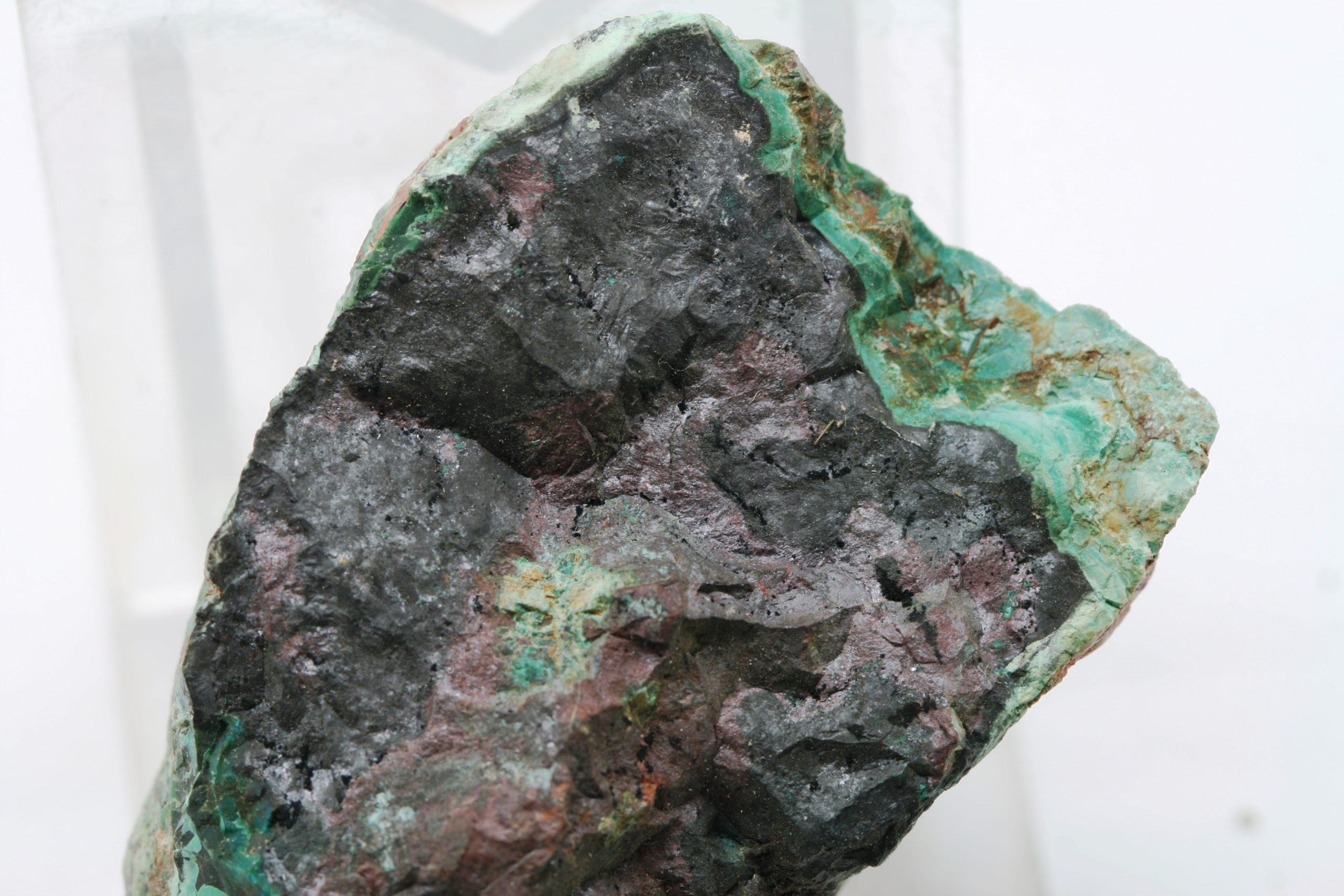 Massiver und Sammelstück von Kuprit mit einem Rand aus Malachit.