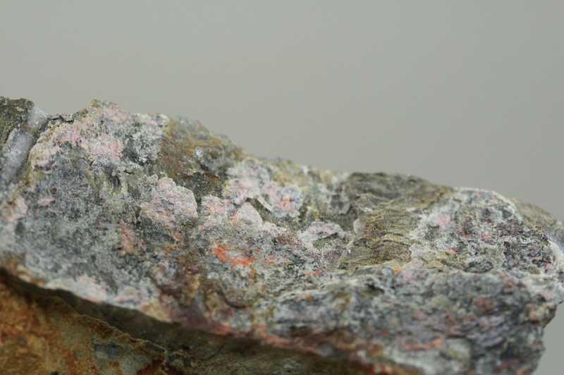 Probe von Bleioxid aus dem Gebiet Silber. Muster von satt orangenroten, pulverförmigen Beschichtungen von Minium .
