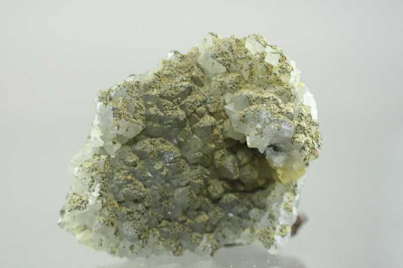 Druse von Mineralien aus der Lokalität Stříbro. Druse von Quarzkristallen auf Bleiglanz zusammen mit Sphalerit und feinkristallinem Pyrit.