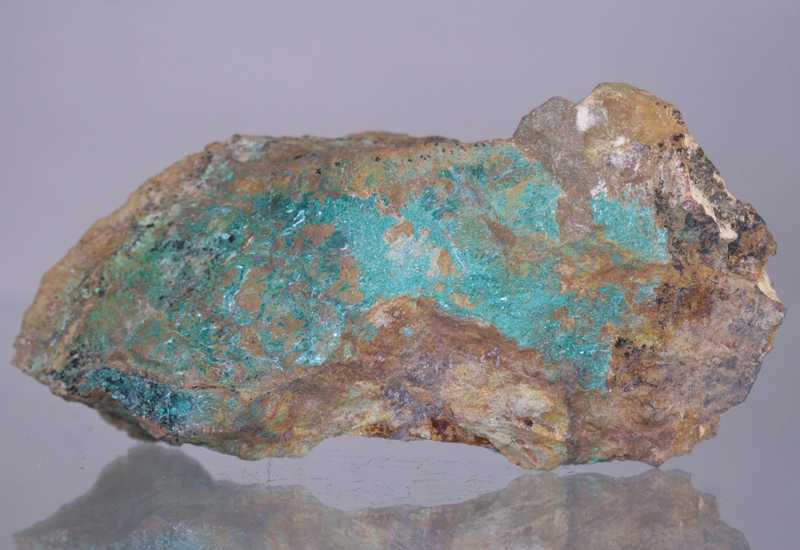 Sehr schöne Stufe von Tyrolit aus Novoveská Huta. Sehr reichhaltige Stufe von blaugrünen bis smaragdgrünen, feinkörnigen bis tafelförmigen Tyrolit-Kristallen; sehr schönes und großes Format des Exemplars, was auf dem Foto nicht ganz deutlich ist!