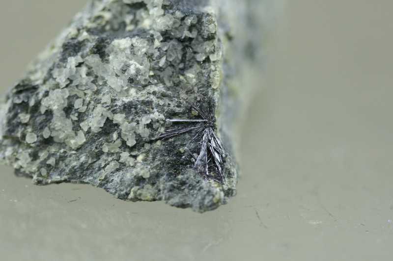 Schönes kleineres Exemplar von Kermezin aus der slowakischen Lokalität Pezinok. Radialstrahliges Aggregat von nadelförmigen Kermezin-Kristallen.
