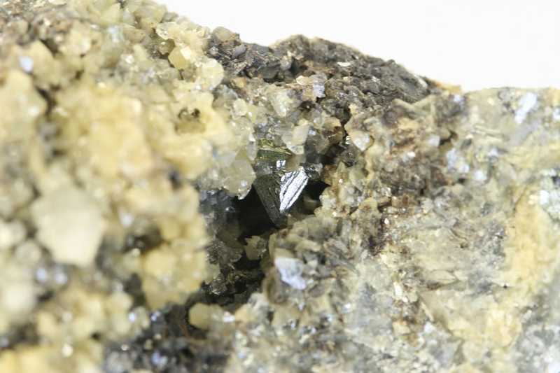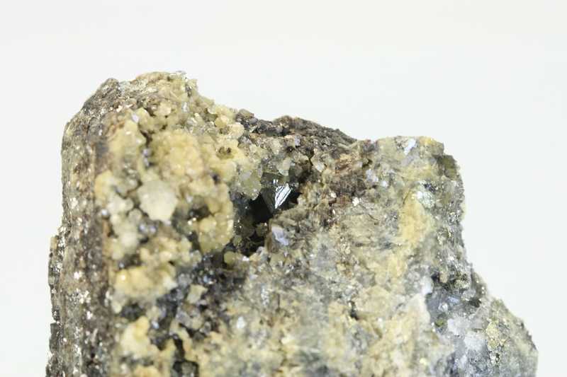 Sehr schöner Tetraedrit aus Příbram aus dem Jahr 1983. Probe unbeschädigter Tetraedritkristalle bis zu 4 mm in einer Höhlung des Erzes.