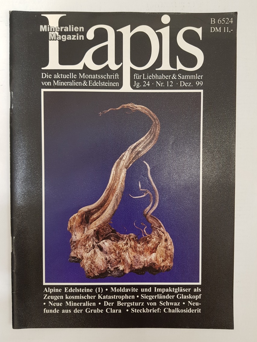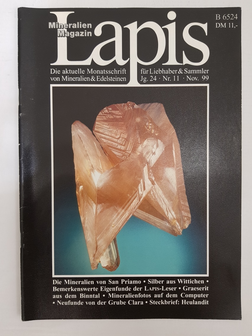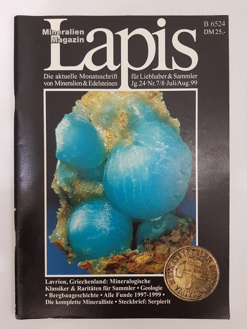 Kompletní ročník 1999 (konkrétně 11 kusů) nejznámějšího evropského mineralogického časopisu Lapis. Časopis je psán v německém jazyce. Všechny kusy jsou v dobrém, zachovalém stavu, v příloze najdete fotografie titulních stránek jednotlivých čísel. Každý časopis má zhruba 50 až 60 stran kvalitního barevného tisku s články o minerálech a světových nalezištích.